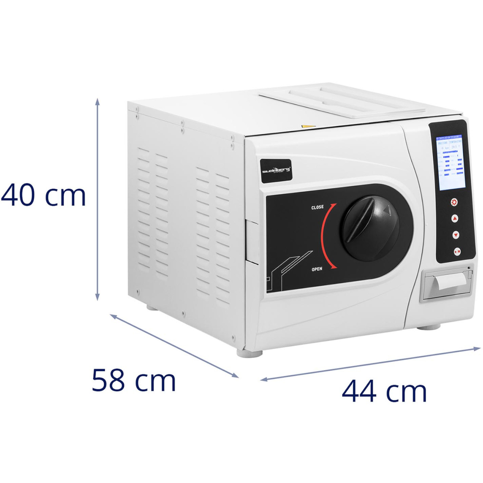 Urządzenie posiada pojemność 12 l. Sterylizuje wszystkie rodzaje instrumentów i narzędzi: porowate, nieporowate, opakowane, nieopakowane w małych odstępach. Autoklaw całkowicie usuwa powietrze z komory, umożliwia swobodną penetrację pary i zapewnia że wszystkie sterylizowane urządzenia są wolne od wirusów, bakterii i grzybów do następnego użycia. Czytelny wyświetlacz LCD pozwala na odczyt temperatury, czasu, ciśnienia oraz postępu pracy. Urządzenie posiada 6 programów sterylizacji oraz testy B&D i próżniowy.