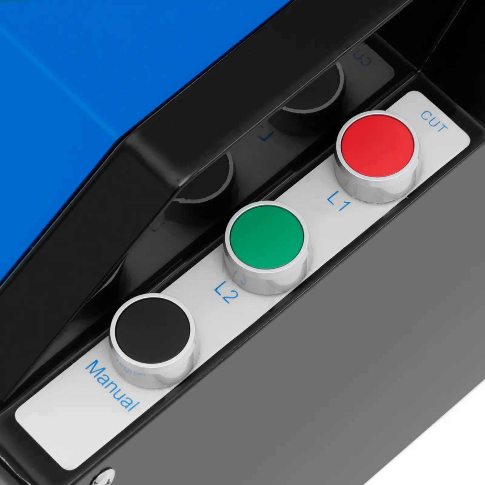 - – Dwie żądane długości do precyzyjnego cięcia taśmy wzdłuż lub w poprzek za naciśnięciem przycisku,
