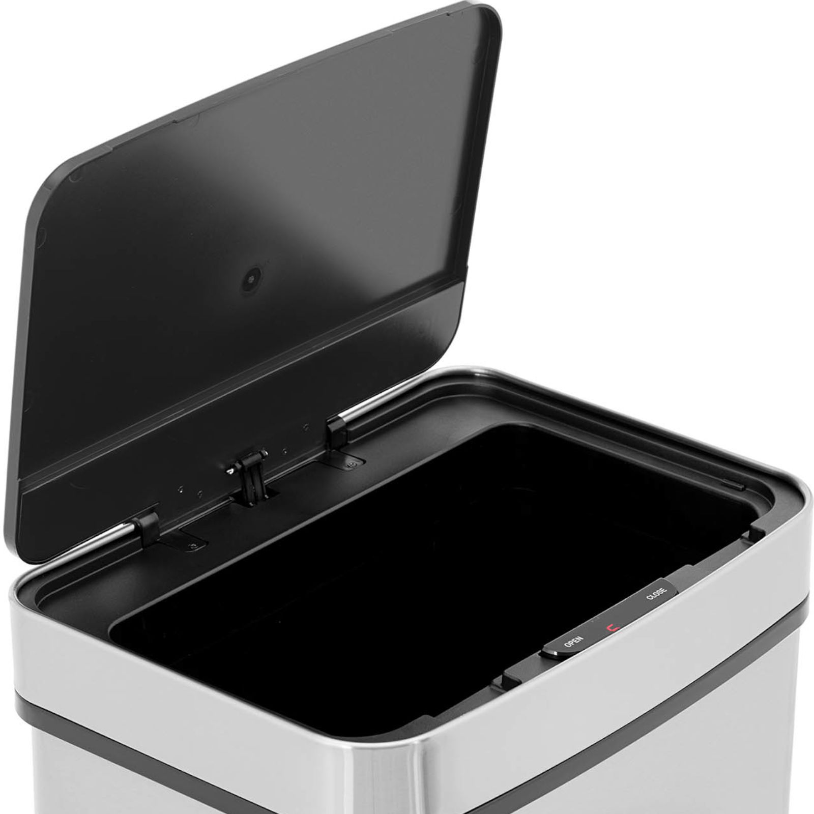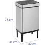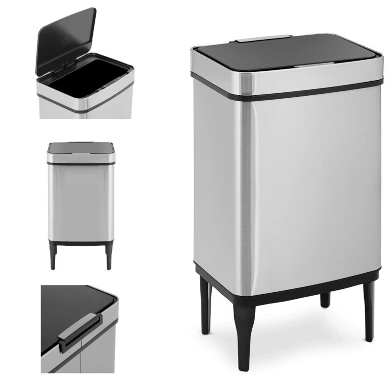Kosz marki Fromm & Starck sprawdzi się w kuchniach, biurach czy salach konferencyjnych. Jego pojemność wynosi 45 l. Kosz zachwyca eleganckim wyglądem. Wykonany został ze stali nierdzewnej, jest niewrażliwy na odciski palców. Pokrywa skutecznie zasłania odpadki oraz zapobiega rozprzestrzenianiu się nieprzyjemnych zapachów. Przycisk czujnika pozwala wygodnie otworzyć/zamykać kosz na śmieci. Otwór o wymiarach 39 x 26 cm ułatwia usuwanie odpadów. Worek na śmieci mocowany jest w kilku prostych krokach za pomocą uchwytu wewnątrz wiadra. Automatyczne zamykanie zasilane jest 6 bateriami AA (brak w zestawie), alternatywnie kosz można otworzyć i zamknąć ręcznie.