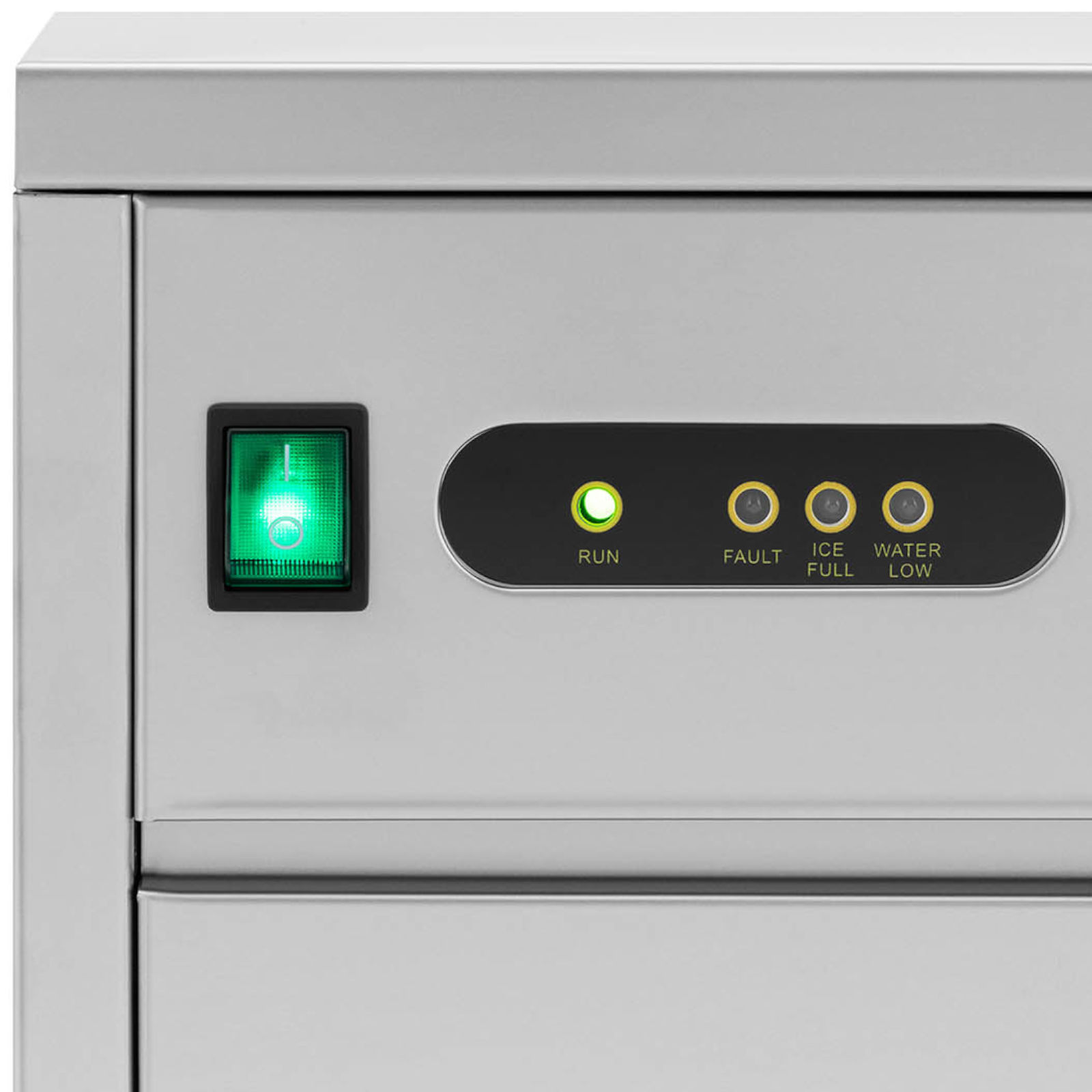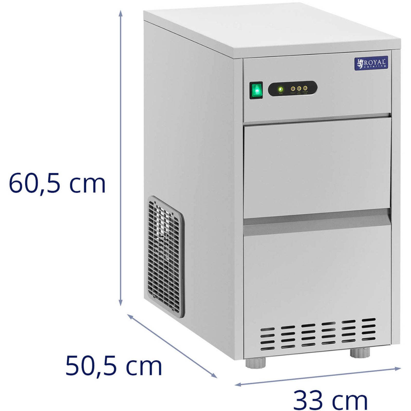 Kostkarka do lodu marki Royal Catering sprawdzi się w barach, restauracjach i wszędzie tam, gdzie niezbędne są schłodzone napoje. Maszyna o wysokiej mocy 165 W ma wydajność 20 kg / 24 h. W jednym cyklu produkcyjnym wytwarza 16 kostek lodu o wielkości Ø28 x 40 mm. Kostkarka jest szybka, wydajna i cicha przy emisji dźwięku 55 dB, dodatkowo wyróżnia się wysoką pojemnością 5 kg, a przejrzysty panel sterowania jest intuicyjny w obsłudze. Wykonana z eleganckiej stali nierdzewnej jest niewrażliwa na czynniki zewnętrzne i odporna na korozję. Ponad to jest prosta w utrzymaniu czystości dzięki gładkim powierzchniom. Wywietrzniki umieszczone z boku i z przodu urządzenia zapewnia przyjemną atmosferę w kuchni lub za barem, co zapobiega przedostawaniu się ciepłego powietrza bezpośrednio do otoczenia.