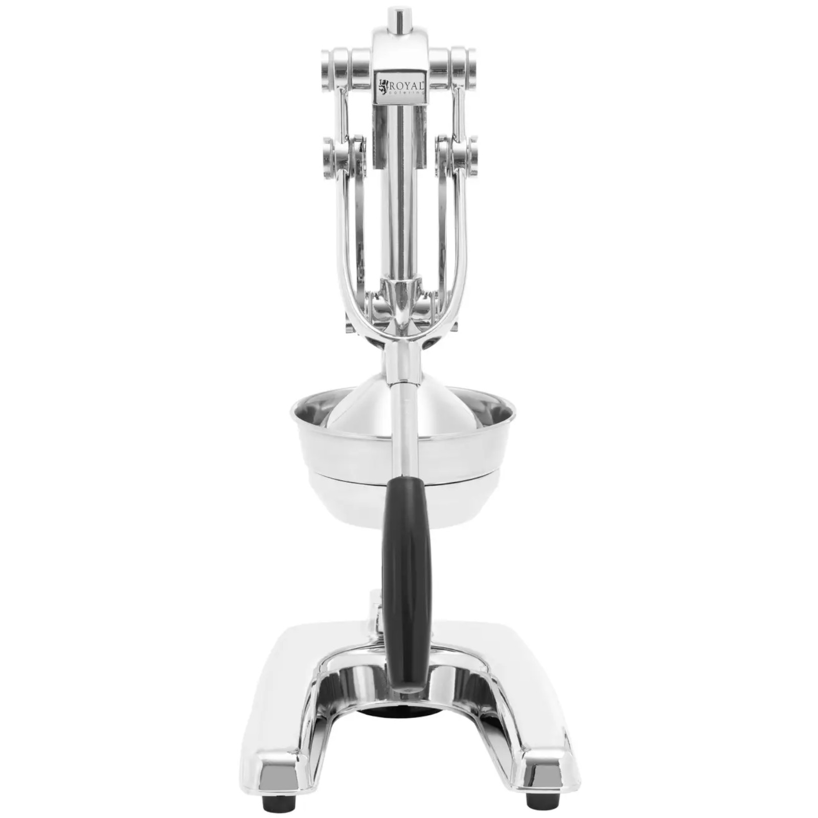 Wyciskarka do owoców marki Royal Catering sprawdzi się w barze, hotelowym bufecie czy na festynie, świeże soki są bardzo popularne i łatwe do przygotowania. Możesz zrobić z nich koktajle lub wypić same. Aby to zrobić, użyj ręcznej wyciskarki do cytrusów, takich jak pomarańcze czy cytryny. W mgnieniu oka wyciśniesz też np. granaty. Wyciskacz do owoców jest łatwy w obsłudze nawet jedną ręką, a jednocześnie zachwyca solidnością. Dzięki temu sprawdzi się zarówno w gastronomii, jak i w domowej kuchni. Rama ze stali nierdzewnej jest bardzo stabilna i wytrzymuje duże obciążenia podczas wyciskania większych ilości owoców cytrusowych. Dzięki dużej dźwigni optymalnie przeniesiesz moc i uzyskujesz do 25% więcej soku niż w konwencjonalnych sokowirówkach. Przyssawki zapewniają stabilność, ponieważ zapobiegają ślizganiu się podczas użytkowania wyciskarki do cytrusów.