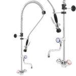 Bateria kuchenna z prysznicem marki Monolith stanowi idealny element wyposażenia każdej profesjonalnej kuchni w restauracji, barze czy hotelu. Wykonanie z chromowanego mosiądzu zapewnia dużą wytrzymałość kranu. Wylewka Ø18 x 250 mm oraz prysznic z przewodem wodnym o długości 1000 mm. W zestawie specjalny hak do zawieszenia prysznica, gdy ten nie jest używany.
