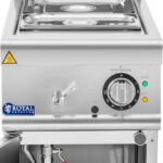Bemar marki Royal Catering sprawdzi się w każdej profesjonalnej kuchni. Zachwyca stylowym designem i funkcjonalnością. Dzięki kompaktowym wymiarom 40 x 73 cm i wysokości 90 cm będzie pasować do większości mebli kuchennych. Nóżki o długości 15 cm są regulowane w zakresie 3 cm, zapewniają bezpieczną stabilność. Zintegrowana szafka zapewnia dużo miejsca do przechowywania. Bemar grzewczy pomieści jeden pojemnik GN 1/2 i jeden GN 1/3.