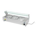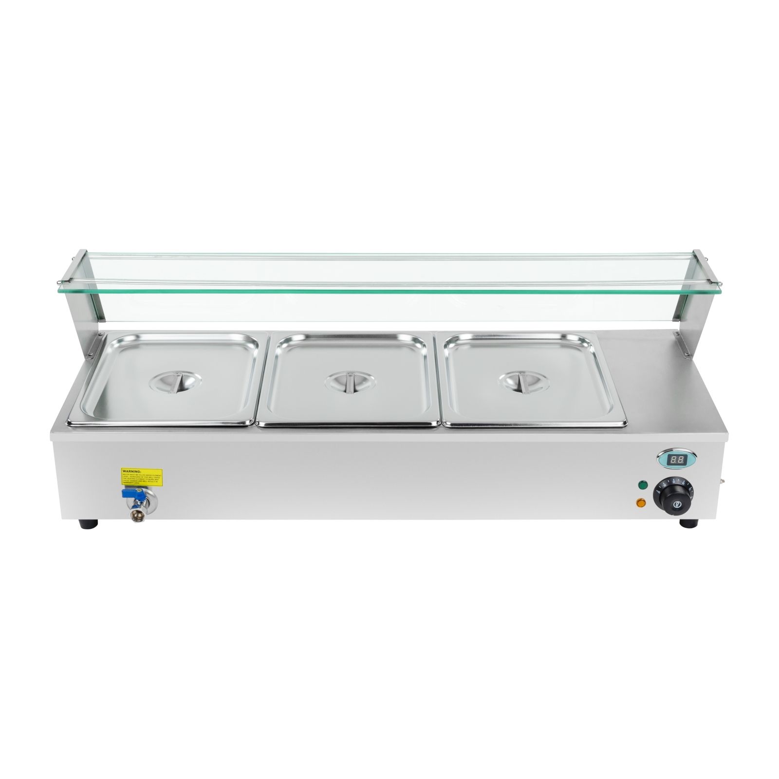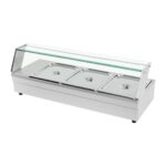 Nasza witryna grzewcza to urządzenie gastronomiczne cechujące się nowoczesnym wyglądem i solidną konstrukcją. Tego typu bemary doskonale sprawdzają się w kawiarniach, cukierniach, restauracjach, barach, stołówkach, jadłodajniach, kantynach, jak również w sklepach spożywczych. Bemar z osłoną to profesjonalny sprzęt stosowany do przechowywania i utrzymywania w cieple gotowych potraw.