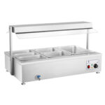 Bemar RCBM-6WA marki Royal Catering to profesjonalne urządzenie gastronomiczne, podgrzewające i podtrzymujące temperaturę dań oraz przekąsek. Sprzęt znajdzie zastosowanie w kantynach, hotelach, restauracjach, barach szybkiej obsługi, bufetach, kafeteriach itp, a także, np. podczas eventów, obozów lub kolonii. Produkt wyposażono w sześć pojemników GN z pokrywkami oraz perforowaną tacką z kolcami, służącą do wygodnego porcjowania mięsa.