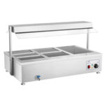 Element grzewczy o mocy 2000 W równomiernie podgrzewa potrawy od spodu, natomiast lampa halogenowa 900 W, od góry. Dzięki swej budowie oraz rozwiązaniom konstrukcyjnym, model RCBM-6WA wyklucza ryzyko przypaleń. Urządzenie dysponuje bezstopniową regulacją temperatury a także możliwością wyjmowania, modyfikacji ułożeń oraz wymiany pojemników GN.