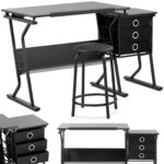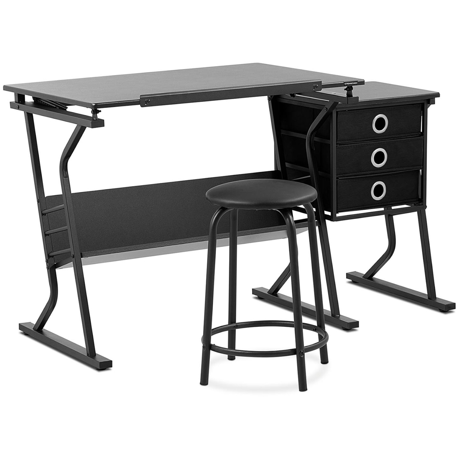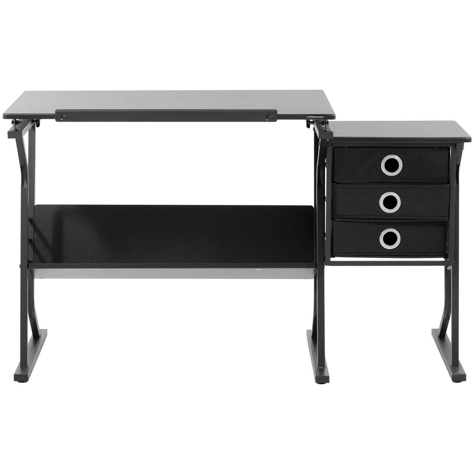 Biurko marki Fromm & Starck jest idealnym wyposażeniem biura, domu, szkoły czy pracowni artystycznej. Odchylany blat w zakresie 0-45° umożliwia zastosowanie go zarówno jako klasyczne biurko oraz stół kreślarski. Blat o wymiarze 90 x 60 cm, wykonany został z płyty MDF z powłoką PVC, jest łatwy w pielęgnacji i ma nośność 60 kg. Pomocniczy stolik posiada blat o wymiarze 40 x 35 cm oraz nośność do 15 kg. Rama stołu kreślarskiego wykonana została ze stali malowanej proszkowo. W komplecie znajduje się także stolik o nośności do 90kg.