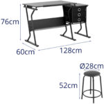 • – Materiał – Blat: MDF z powłoką PVC / rama: stal węglowa z powłoką proszkową / elementy montażowe: stal ocynkowana / szuflady: włóknina, karton / stołek: MDF, pianka, tworzywo sztuczne (PU)