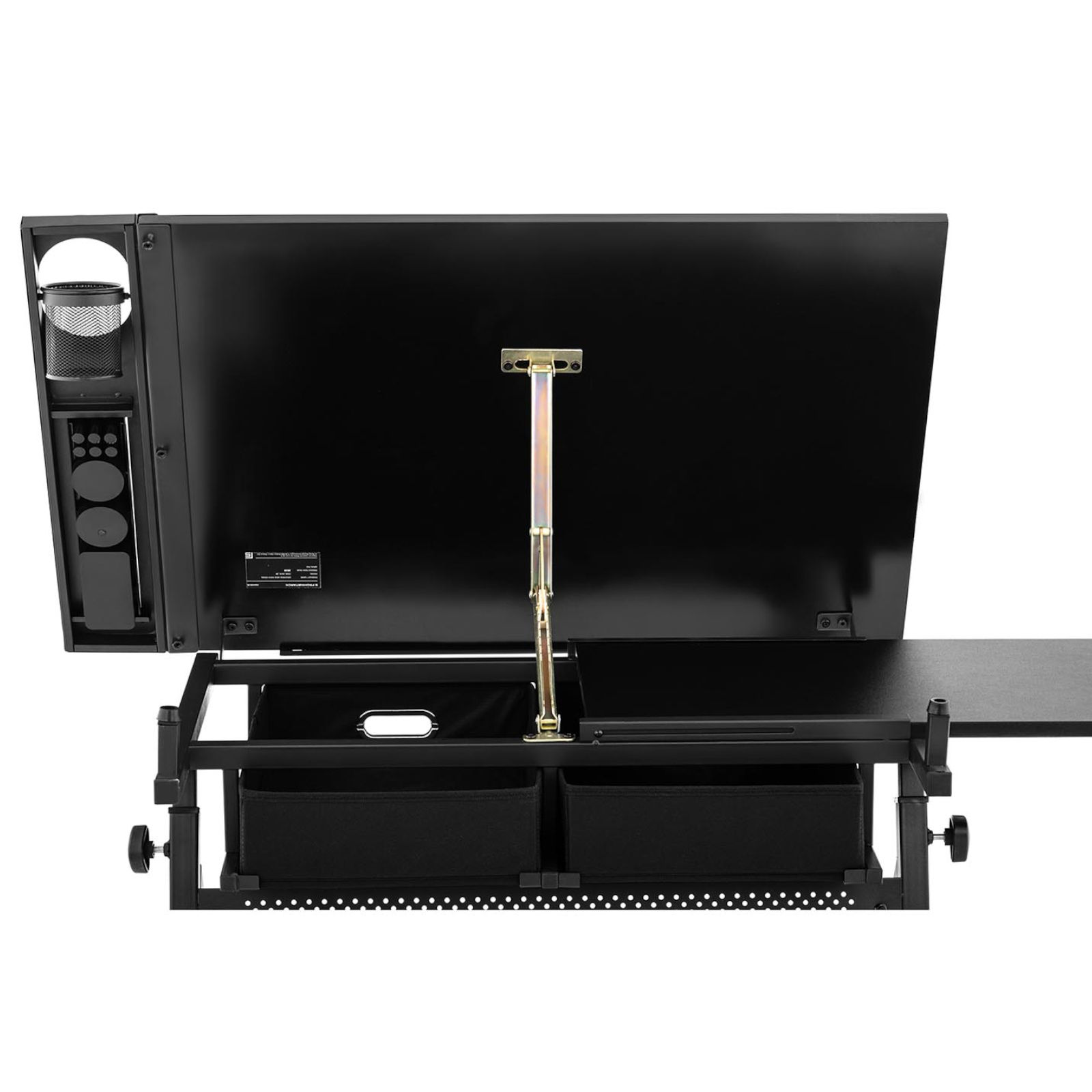 Biurko kreślarskie marki Fromm & Starck to niezastąpione elementy wyposażenia pracowni artystycznej lub biura architekta. Duża powierzchnia robocza o wymiarach 115 x 60 cm sprawia, że bezproblemowo rozłożysz całe arkusze papieru. Regulowana wysokość w zakresie 65-90,5 cm. Dodatkowo blat możesz ustawić pod kątem w zakresie 0-70°. Biurko kreślarskie posiada dwie pojemne szuflady, przybornik oraz metalową półkę. Blat o grubości 15 mm wykonano z płyty MDF, a niektóre jego elementy z PVC. Do stworzenia ramy użyto stalowych rurek pomalowanych proszkowo oraz nylonowej tkaniny. Siedzisko krzesła obito czarnym poliuretanem i wypełniono je mocną pianką. Biurko oraz taboret wyposażone zostały w gumowe nóżki chroniące przed ślizganiem się.