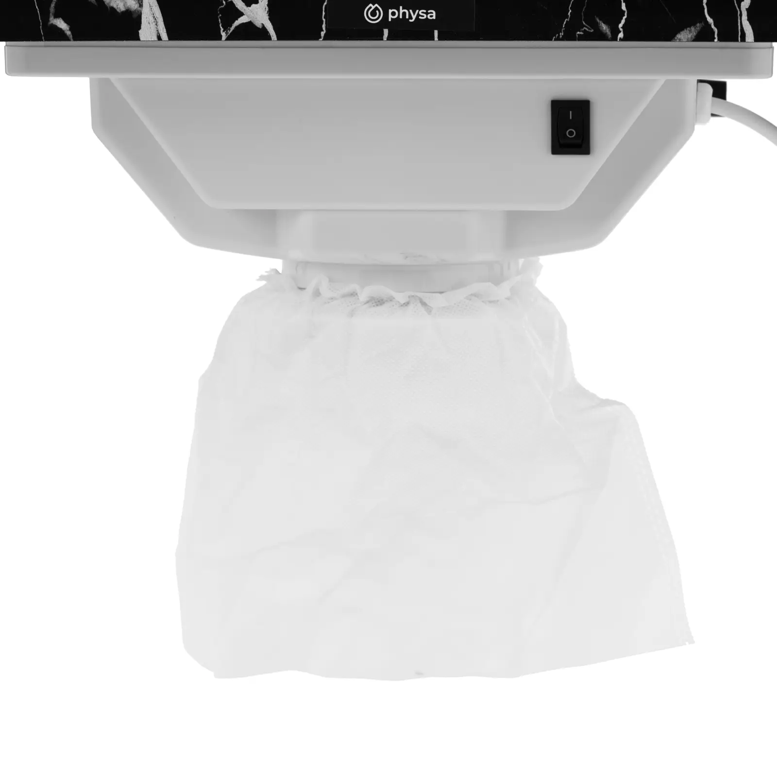 Składany stolik do manicure marki Physa zapewnia dodatkową przestrzeń do pracy w salonie. Błyskawicznie się go rozkłada. Sprawdzi się na targach kosmetycznych, świeżym powietrzu lub w domach klientów. Blat zapewnia wystarczająco dużo miejsca do wygodnej pracy. Na jego środku umieszczono pochłaniacz, który usuwa kurz i pozostałości po paznokciach. Dołączona do zestawu poduszka pod dłonie zapewnia maksymalny komfort podczas zabiegów. Niezależnie od tego, czy chodzi o manicure klasyczny, malowanie paznokci, czy o pracę biurową, biurko kosmetyczne można wykorzystać na wiele sposobów. Gładkie powierzchnie są łatwe w czyszczeniu. Wysoka jakość wykonania i trwała płyta MDF sprawiają, że stół do manicure sprosta wszystkim wyzwaniom. Jednocześnie zachwyca długą żywotnością i nieskazitelnym wyglądem. Dzięki 4 kółkom można wygodnie ustawić biurko do manicure w dogodnym miejscu.