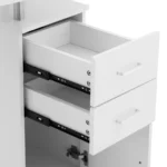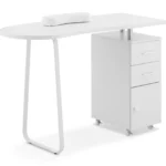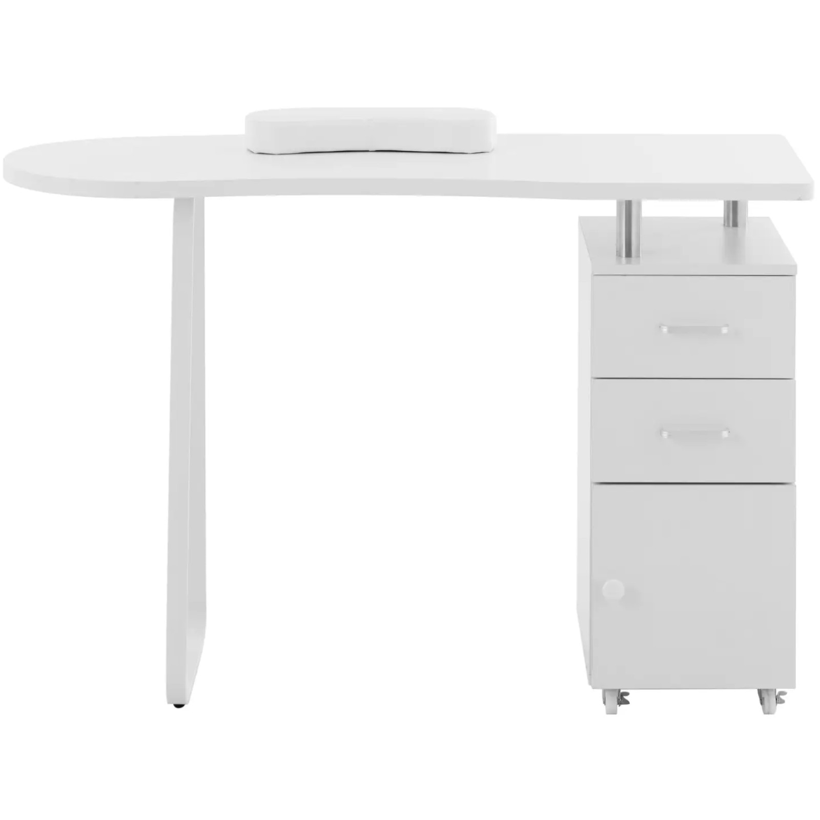 Biurko do manicure marki Physa oferuje dużo miejsca do przechowywania urządzeń i przyborów kosmetycznych w przejrzysty i łatwo dostępny sposób. Duży blat o wymiarach 120 x 47 cm zapewnia wystarczająco dużo miejsca do wygodnej pracy. 2 szuflady, szafka i półka po jednej stronie pozwalają schludnie przechować wszystkie przybory i zadbać o porządek na stanowisku. Mocna noga zapewnia stabilność mebla. Poduszka pod dłonie zapewnia maksymalny komfort podczas zabiegów. Niezależnie od tego, czy chodzi o manicure klasyczny, malowanie paznokci, czy o pracę biurową, biurko kosmetyczne można wykorzystać na wiele sposobów. Gładkie powierzchnie i minimalistyczna konstrukcja umożliwiają szybkie wyczyszczenie mebla. Wysoka jakość wykonania i trwała płyta MDF sprawiają, że stół do manicure sprosta wszystkim wyzwaniom codziennego życia w gabinecie. Jednocześnie zachwyca długą żywotnością i nieskazitelnym wyglądem. 4 kółkom pozwalają wygodnie zmieniać miejsce ustawienia biurka.
