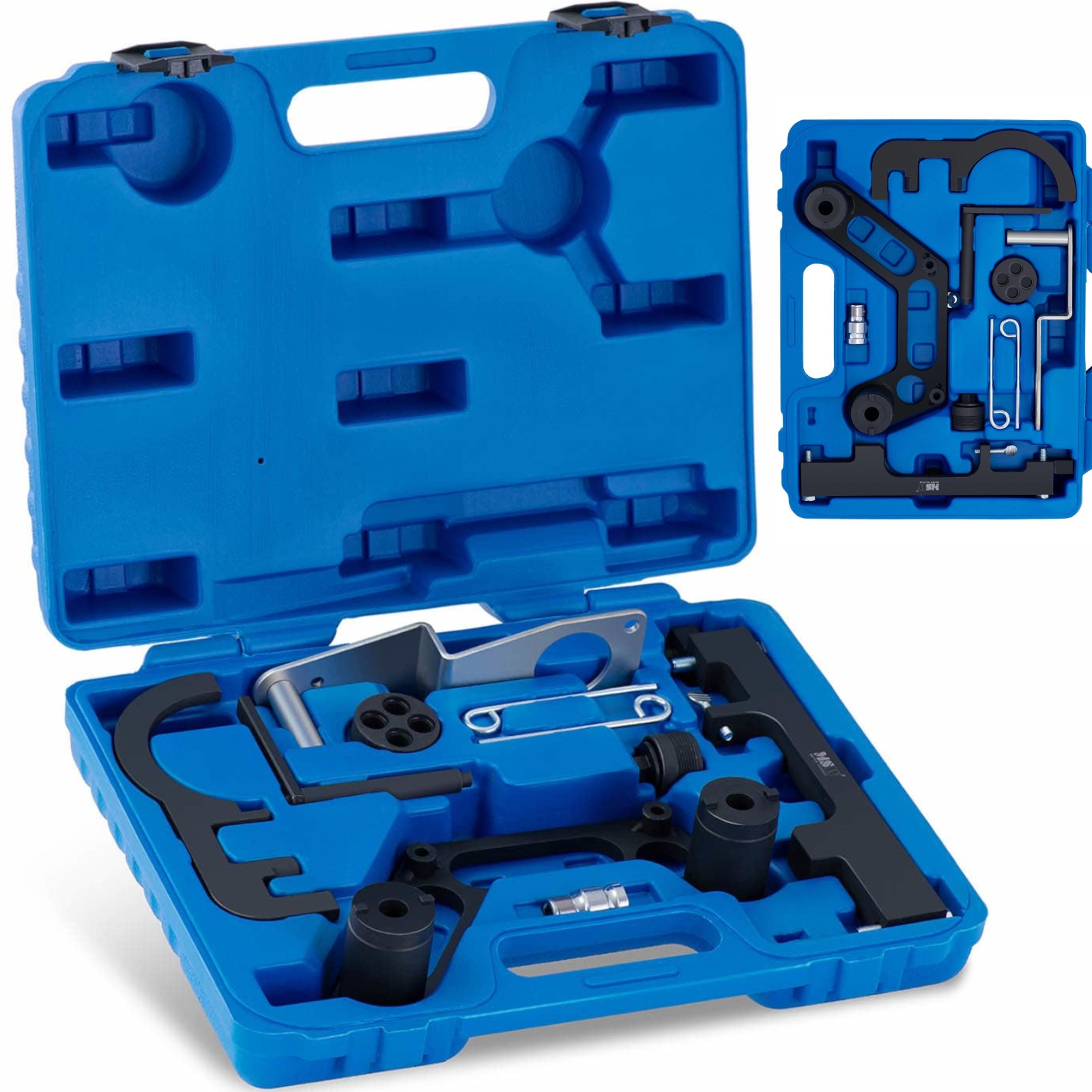 Blokada rozrządu firmy MSW pozwoli naprawić silnik samochodowy Diesla BMW i MINI z kodami N47 i N57. Dzięki niej można szybko wymienić i zablokować wałek rozrządu lub łańcuch rozrządu, wymienić uszczelkę głowicy cylindrów lub przeprowadzić inne naprawy. Narzędzia są optymalnie dopasowane do odpowiednich elementów silnika i dlatego są łatwe w użyciu. Blokada rozrządu gwarantuje najskuteczniejszą metodę mocowania i regulacji silnika. Zestaw MSW zużywa się w bardzo małym stopniu. W zestawie znajdują się narzędzia do regulacji wałków rozrządu, wałów korbowych, blokadę napięcia łańcucha rozrządu i inne. Wykonane zostały z wytrzymałej stali węglowej. Zapewnią więc wieloletnie użytkowanie. Kiedy urządzenie nie jest używane, można schować wszystkie przybory w wytrzymałej plastikowej walizce transportowej.