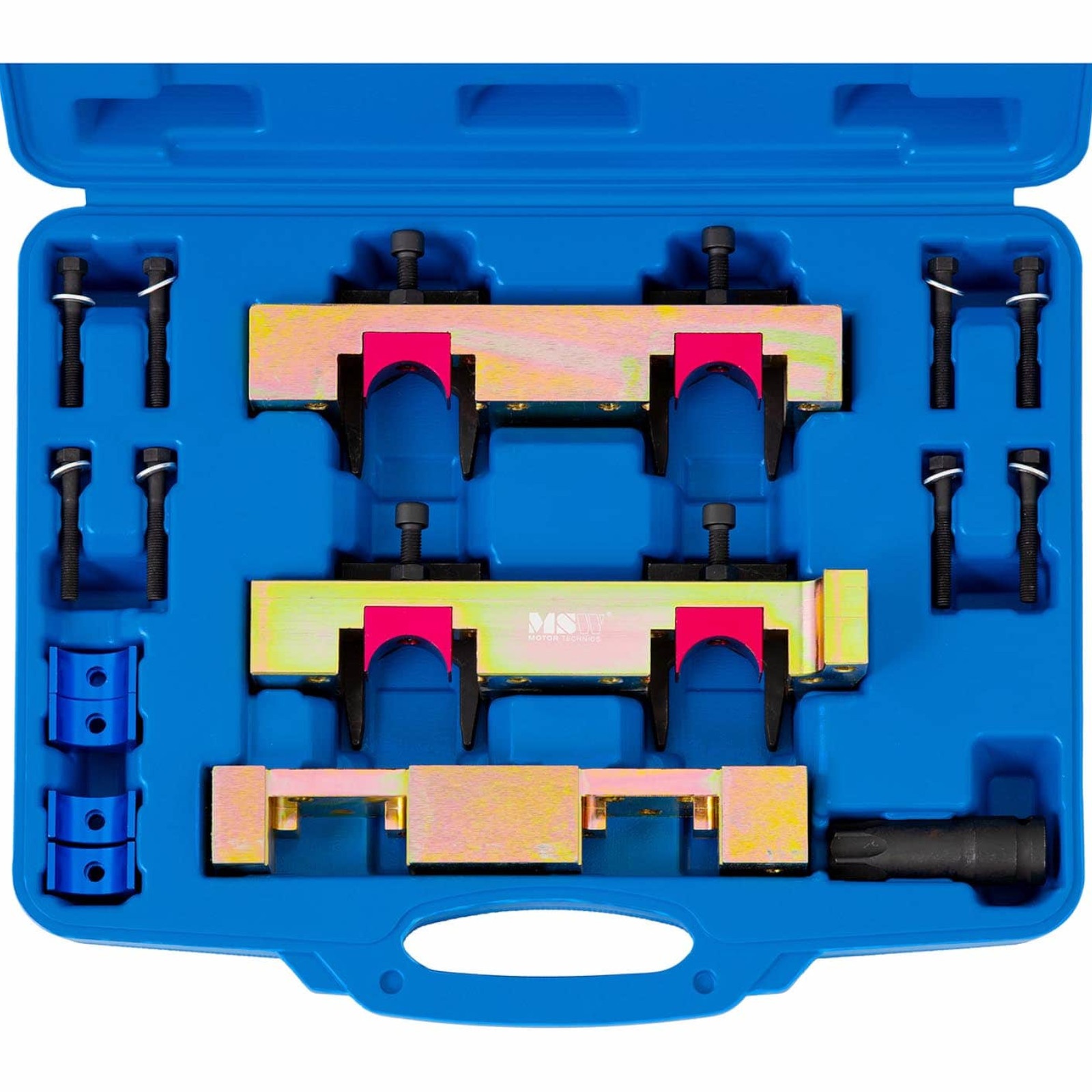 Blokada rozrządu marki MSW umożliwi naprawę silnika samochodowego marki Mercedes-Benz. Naprawa wałka rozrządu to już nie problem, nie trzeba blokować wałka rozrządu ani sprawdzać i ustawiać mocowania rozrządu silnika w dół. Blokada umożliwia wykonywanie skomplikowanych prac przy różnych pojazdach, np. na modelach Mercedes-Benz Klasy A (W176) z 2012 roku, A 180 i A 200 oraz Mercedes-Benz Klasy B (W246) z 2011 roku, B 180 i B 200 – do użytku jak OEM 270589006100. Dopasowanie tego profesjonalnego narzędzia jest optymalne do odpowiednich elementów silnika i dlatego jest łatwe w użyciu. Zestaw narzędzi MSW zużywa się w bardzo małym stopniu. Narzędzia wykonane zostały z wytrzymałej stali węglowej, co zapewnia wieloletnie działanie. Dlatego nie powinno zabraknąć ich w żadnym profesjonalnym warsztacie samochodowym lub garażu majsterkowicza. Cały komplet jest umieszczony w praktycznej walizce z tworzywa sztucznego, która ma wgłębienie na każdą pojedynczą część.