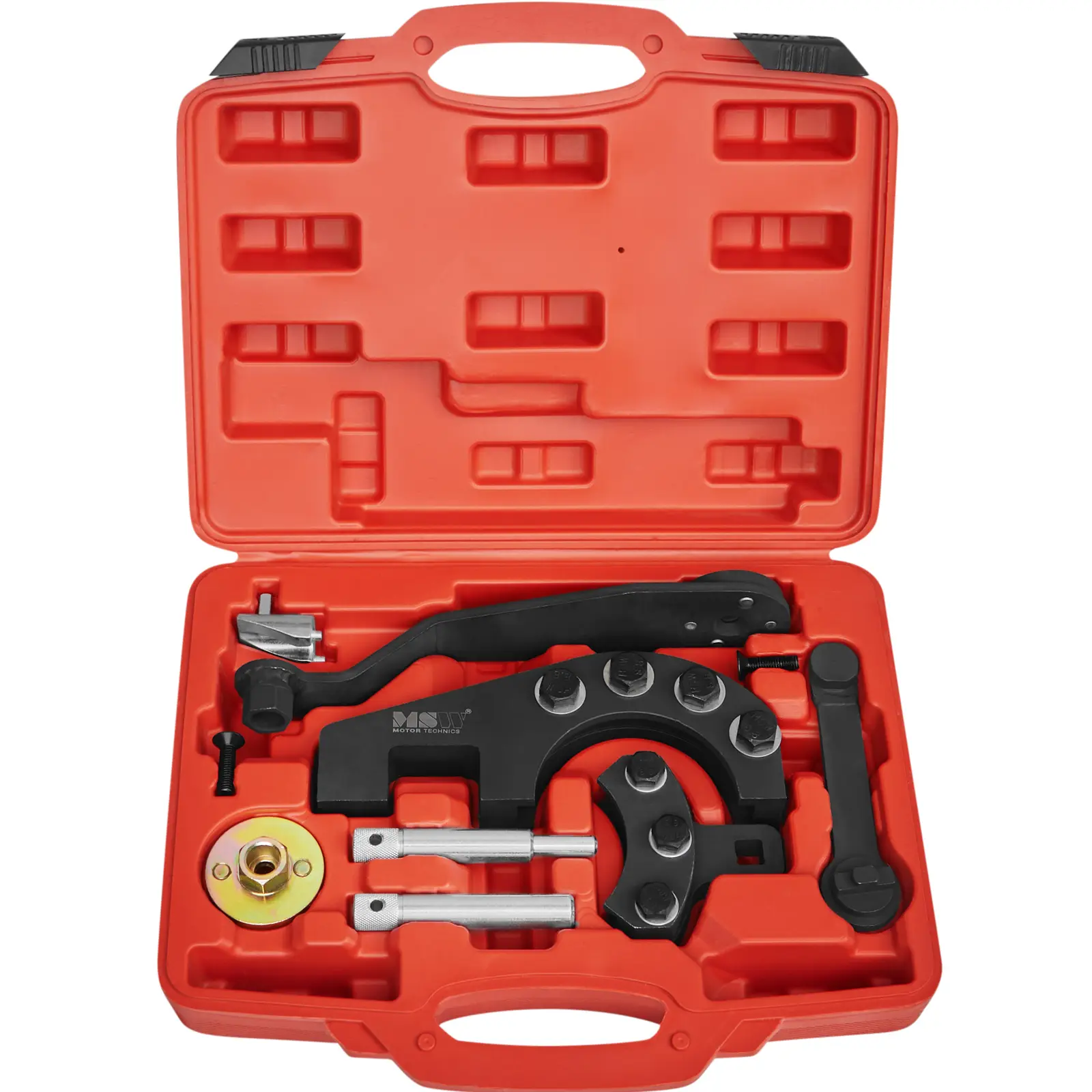Blokada rozrządów silników Diesel 2.5 TDI marki MSW, to profesjonalny sprzęt do naprawy, ustawiania oraz testowania wałków rozrządu. Będzie więc niezastąpiony w warsztatach samochodowych, garażach i pracowniach majsterkowiczów. Zestaw jest kompatybilny z różnymi modelami samochodów marki Volkswagen, sprawdzi się więc w niejednym warsztacie. Blokada rozrządu pasuje do następujących aut: Transporter (03-08),Touareg (03-08), Multivan (04-08). Można wykorzystać ją również do silników AXD, AXE, BAC, BLJ, BLK, BNZ, BPC, BPD i BPE. Poręczna walizka z przegrodami ułatwi przechowywanie i transport.