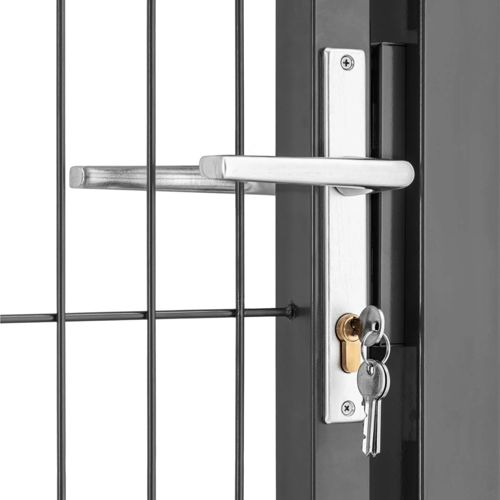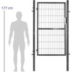 Wysokiej jakości metalowa furtka ogrodowa firmy Wiesenfield jest odporna na warunki pogodowe. Łatwo ją zamontować, by ochronić ogród, taras, trawnik lub wybieg przed niepożądanymi gośćmi. Bramka ogrodowa o wymiarach 105 x 211 cm wykonana jest z wysokiej jakości stali malowanej proszkowo, która chroni bramkę przed rdzą i promieniowaniem UV. Solidne słupki gwarantują stabilną podstawę. Podczas montażu można zdecydować o tym, czy furtka ogrodowa otwiera się do wewnątrz, czy na zewnątrz. Po ustawieniu słupków bramkę metalową można zawiesić na zawiasach bez użycia narzędzi. Oprócz słupków w komplecie znajduje się również klamka, zamek oraz 3 klucze. Dzięki oczkom siatki furtka ogrodowa doskonale pasuje do standardowych płotów z paneli ogrodzeniowych. Można ją łatwo połączyć z innymi rodzajami ogrodzeń, takimi jak murki, żywopłoty czy płoty z drutu.