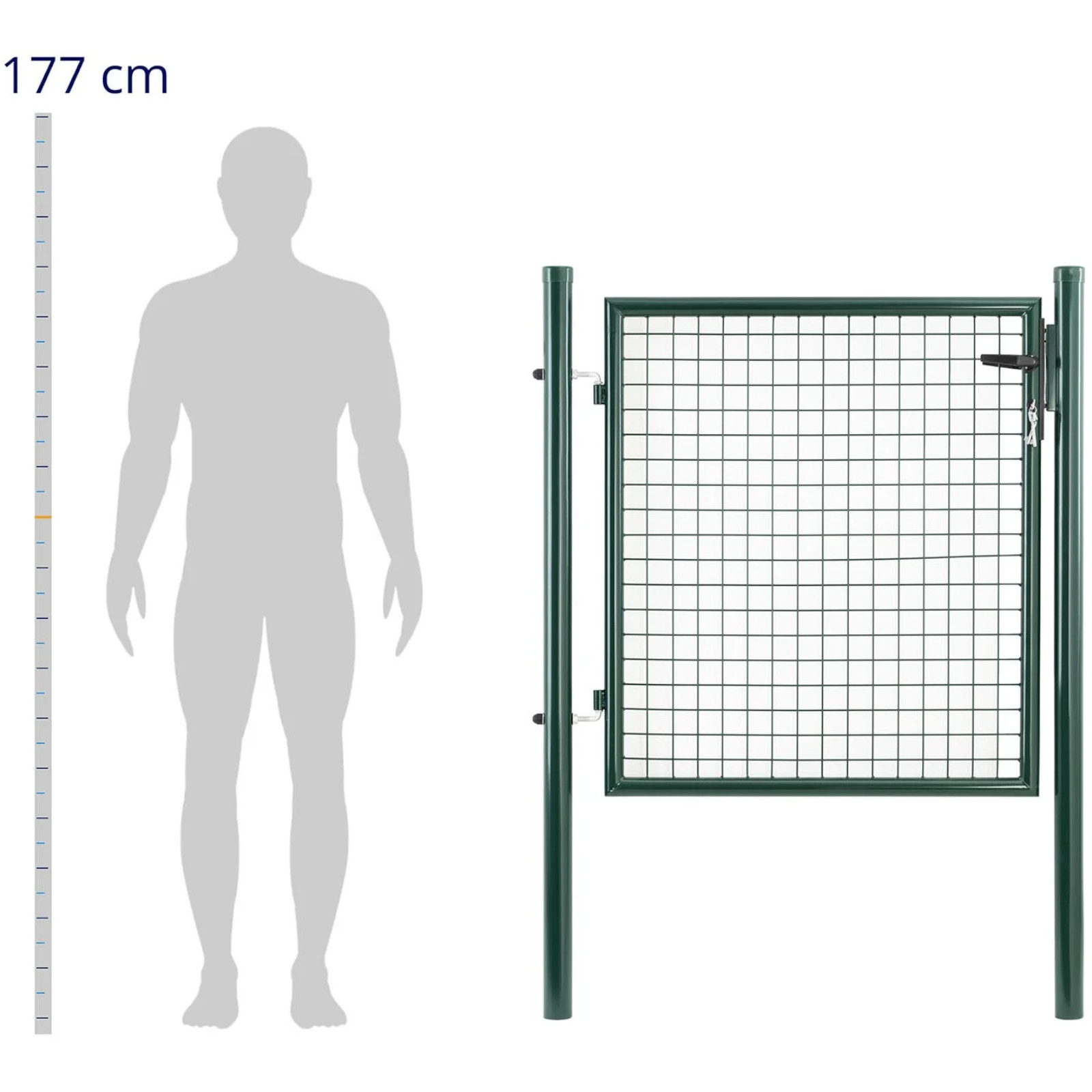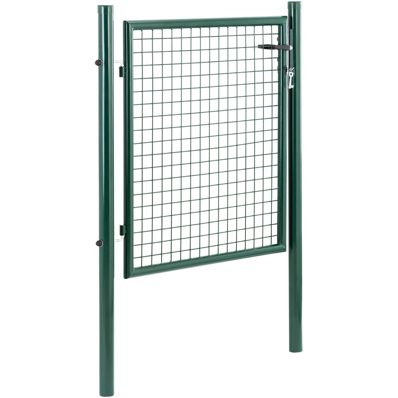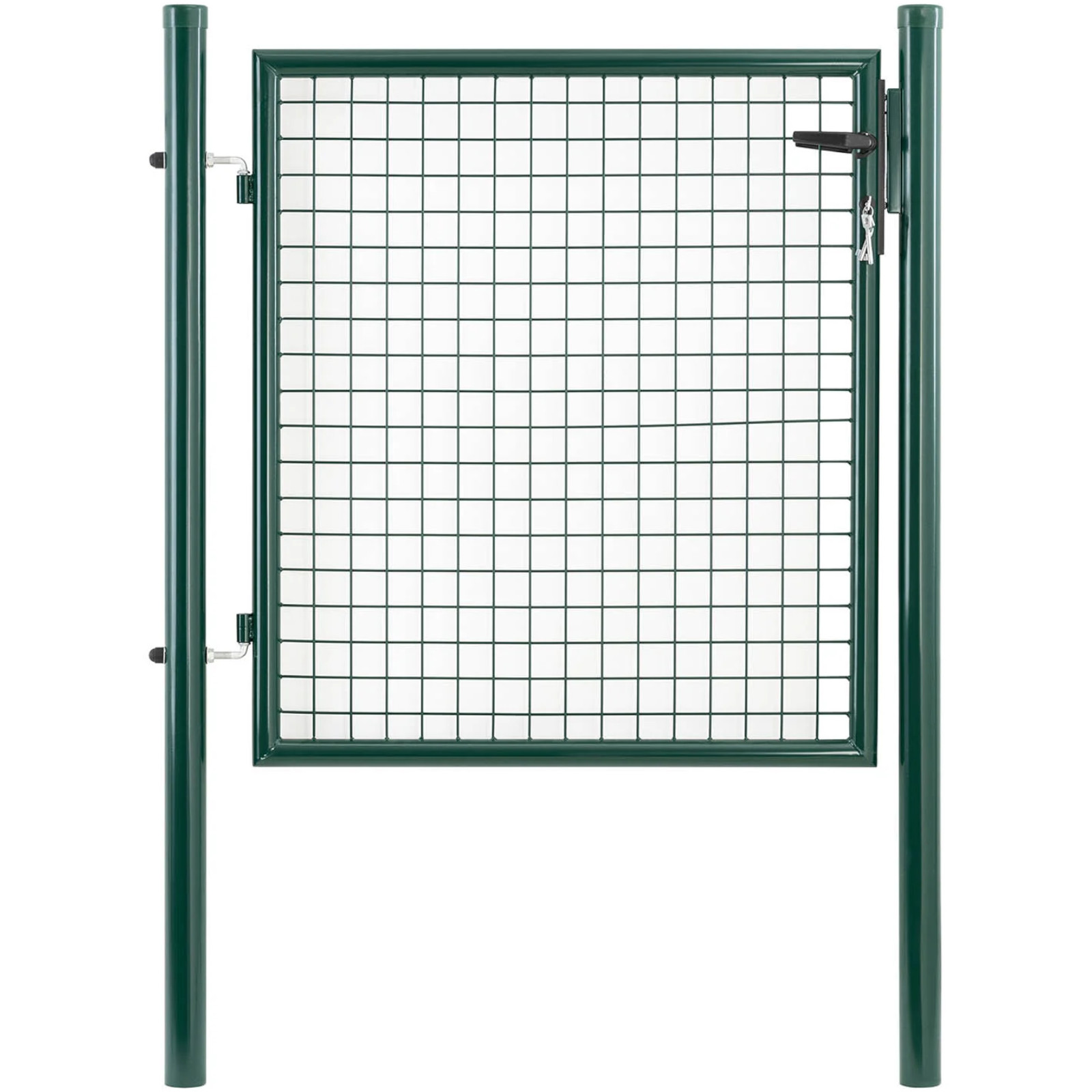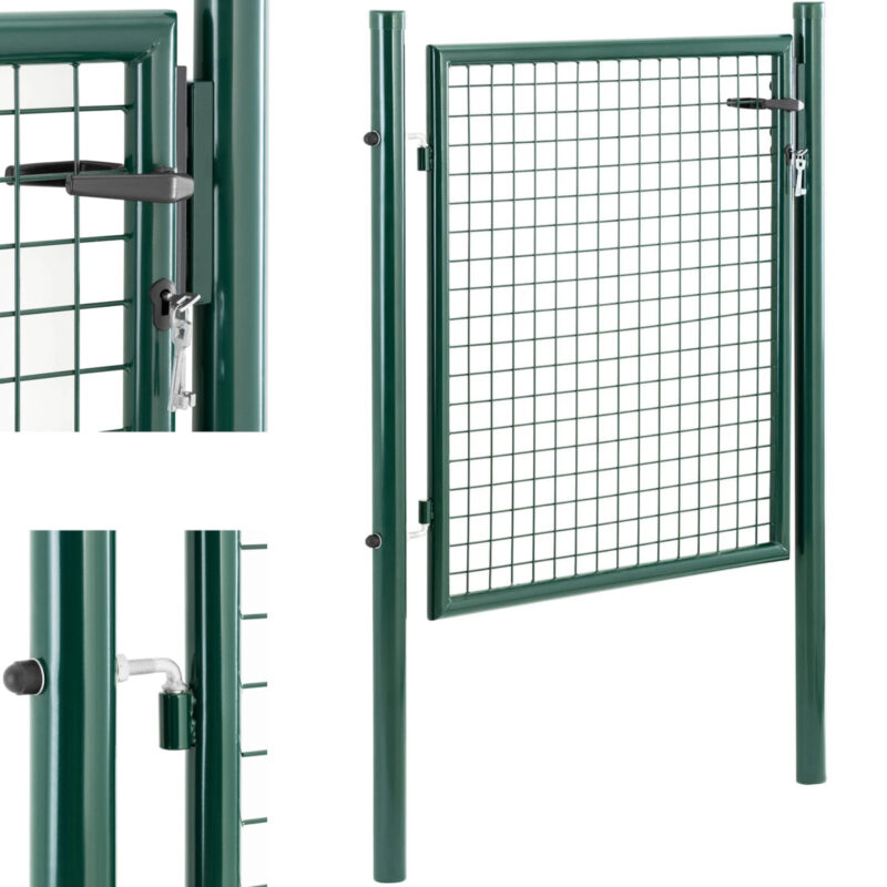 Wysokiej jakości metalowa furtka ogrodowa firmy Wiesenfield jest odporna na warunki pogodowe. Łatwo ją zamontować, by ochronić ogród, taras, trawnik lub wybieg przed niepożądanymi gośćmi. Bramka ogrodowa o wymiarach 107.5 x 150 cm wykonana jest z wysokiej jakości stali malowanej proszkowo, która chroni bramkę przed rdzą i promieniowaniem UV. Solidne słupki mają średnicę 60 mm oraz ścianki o grubości 1,5 mm i gwarantują stabilną podstawę. Podczas montażu można zdecydować o tym, czy furtka ogrodowa otwiera się do wewnątrz, czy na zewnątrz. Po ustawieniu słupków bramkę metalową można zawiesić na zawiasach bez użycia narzędzi. Oprócz słupków w komplecie znajduje się również klamka, zamek oraz 3 klucze. Dzięki oczkom siatki o wymiarach 50 x 50 mm furtka ogrodowa doskonale pasuje do standardowych płotów z paneli ogrodzeniowych. Można ją łatwo połączyć z innymi rodzajami ogrodzeń, takimi jak murki, żywopłoty czy płoty z drutu.