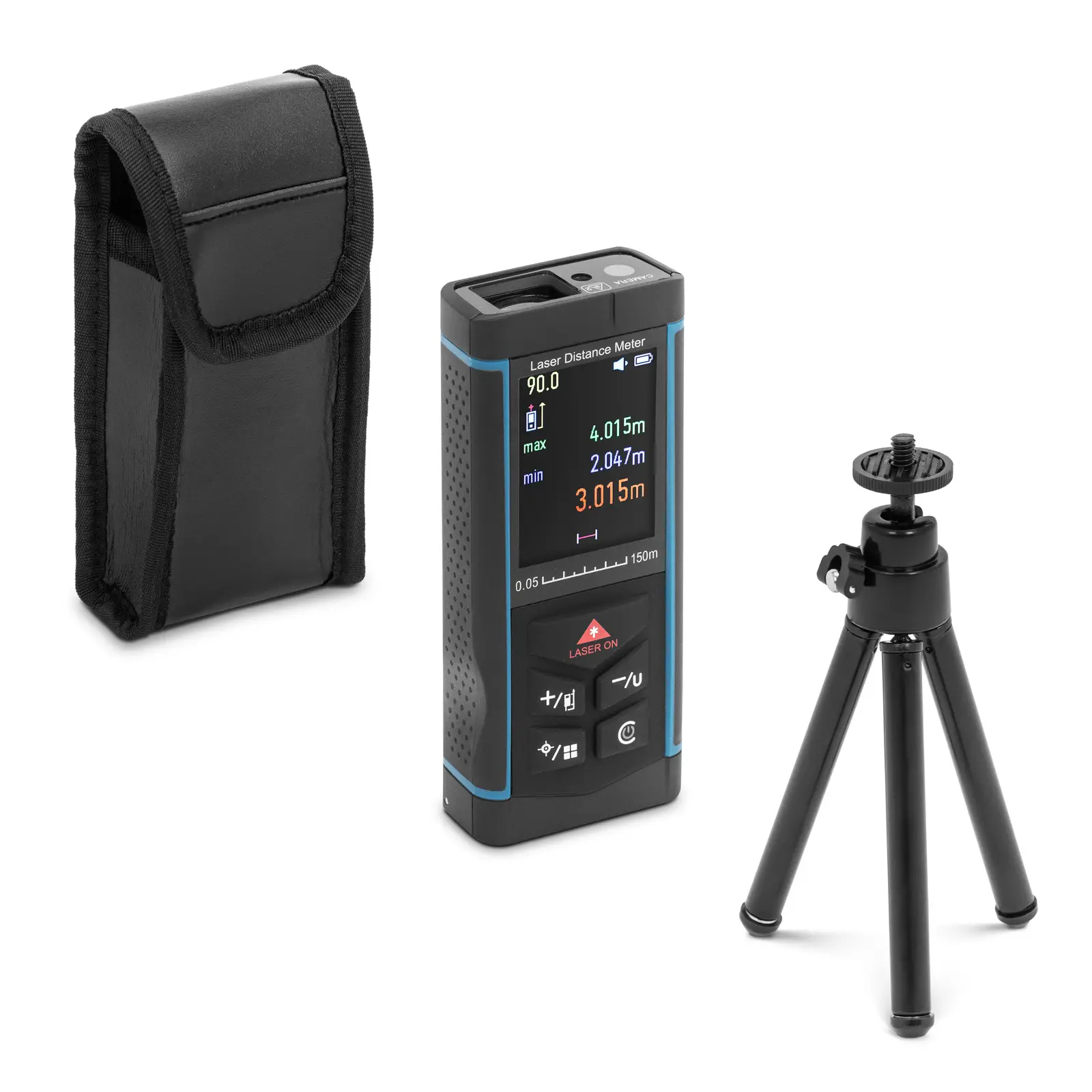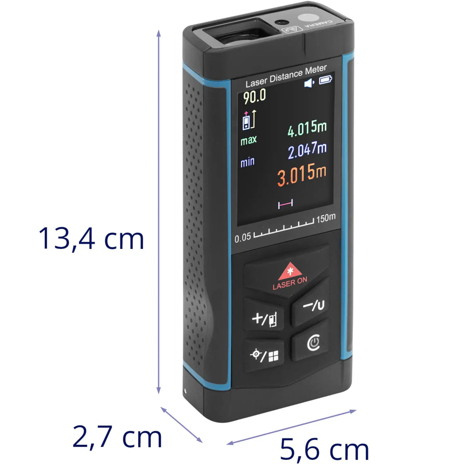 Dalmierz laserowy marki Steinberg Systems jest bardzo dokładny, mały i niezawodny. Sprawdzi się na placach budowy, w magazynach czy w domu. Znacznie ułatwia pracę, nie potrzebuje żadnych punktów pomiarowych ani drugiej osoby, aby zapewnić dokładne wyniki. Posiada zasięg 150 m i sprawdza się wszędzie tam, gdzie ważna jest dokładność (do 2 mm) – czy to na placach budowy, w magazynach, czy w domu. Zintegrowana kamera i jasny wyświetlacz pozwolą precyzyjnie wycelować w żądany punkt i sprawdzić dystans w czasie rzeczywistym. Urządzenie oprócz odległości niezawodnie mierzy również powierzchnię i objętość. Dzięki temu idealnie nada się do obliczania ilości materiałów. Miernik poda wszystkie wartości i ich odpowiedniki dla powierzchni i kubatury w metrach, calach lub stopach. Urządzenie ma pamięć na 100 zapisów. Posiada także automatyczną kalibrację. Wyświetla kąt w czasie rzeczywistym, więc jest szybszy i bardziej precyzyjny niż poziomica. Dzięki niewielkim rozmiarom i zasilaniu bateryjnemu jest idealnym urządzeniem nawet w podróży. Za sprawą paska na rękę i miękkiego nylonowego etui można wygodnie zabrać go ze sobą. Miernik posiada laser klasy 2. Emituje on wiązkę tylko w zakresie fal widzialnych i nie powoduje żadnych urazów, jeśli przypadkowo na niego spojrzysz. Wyposażono do w podświetlany ekran LCD. Umożliwia on bezproblemowy odczyt wartości, nawet w nocy lub w ciemnym otoczeniu.