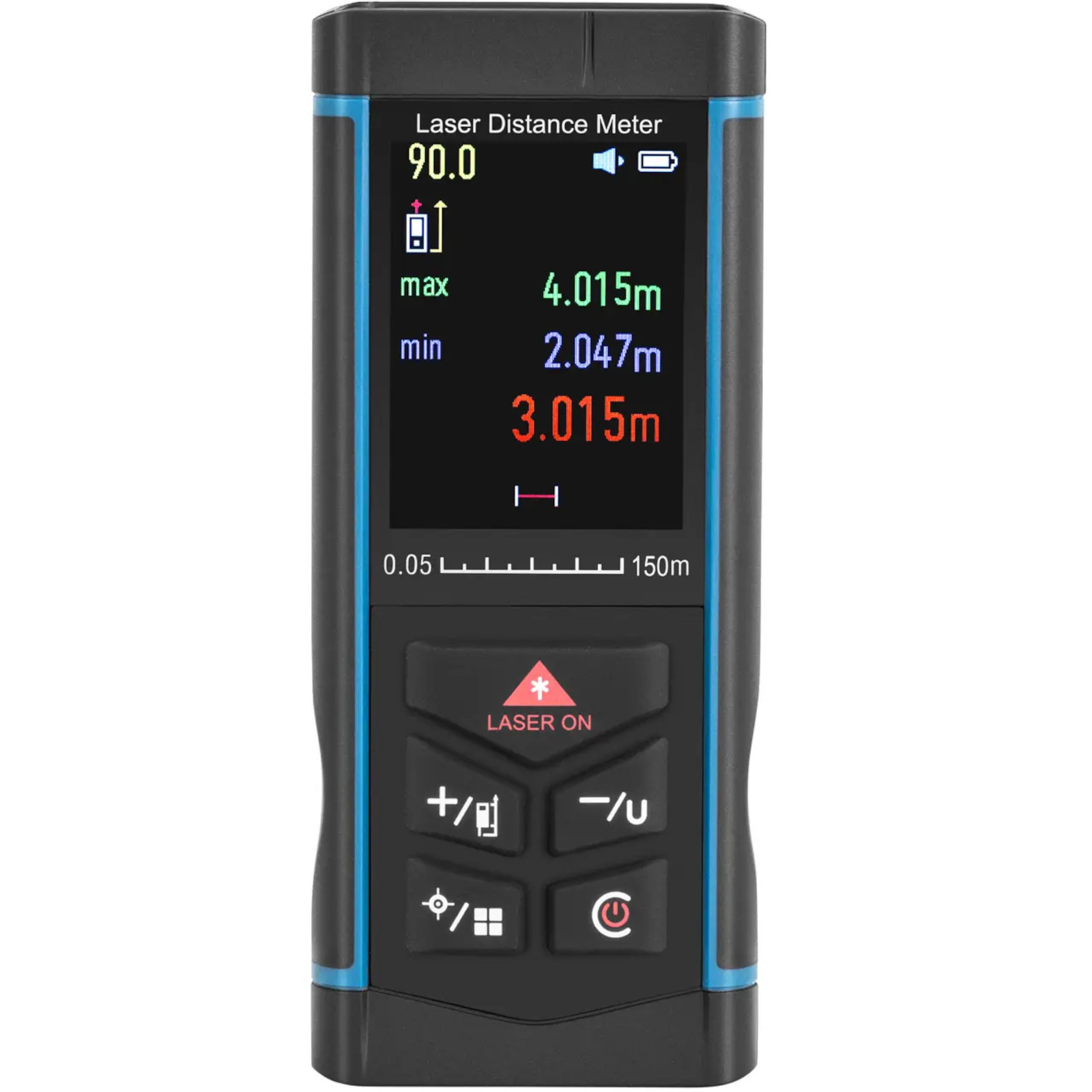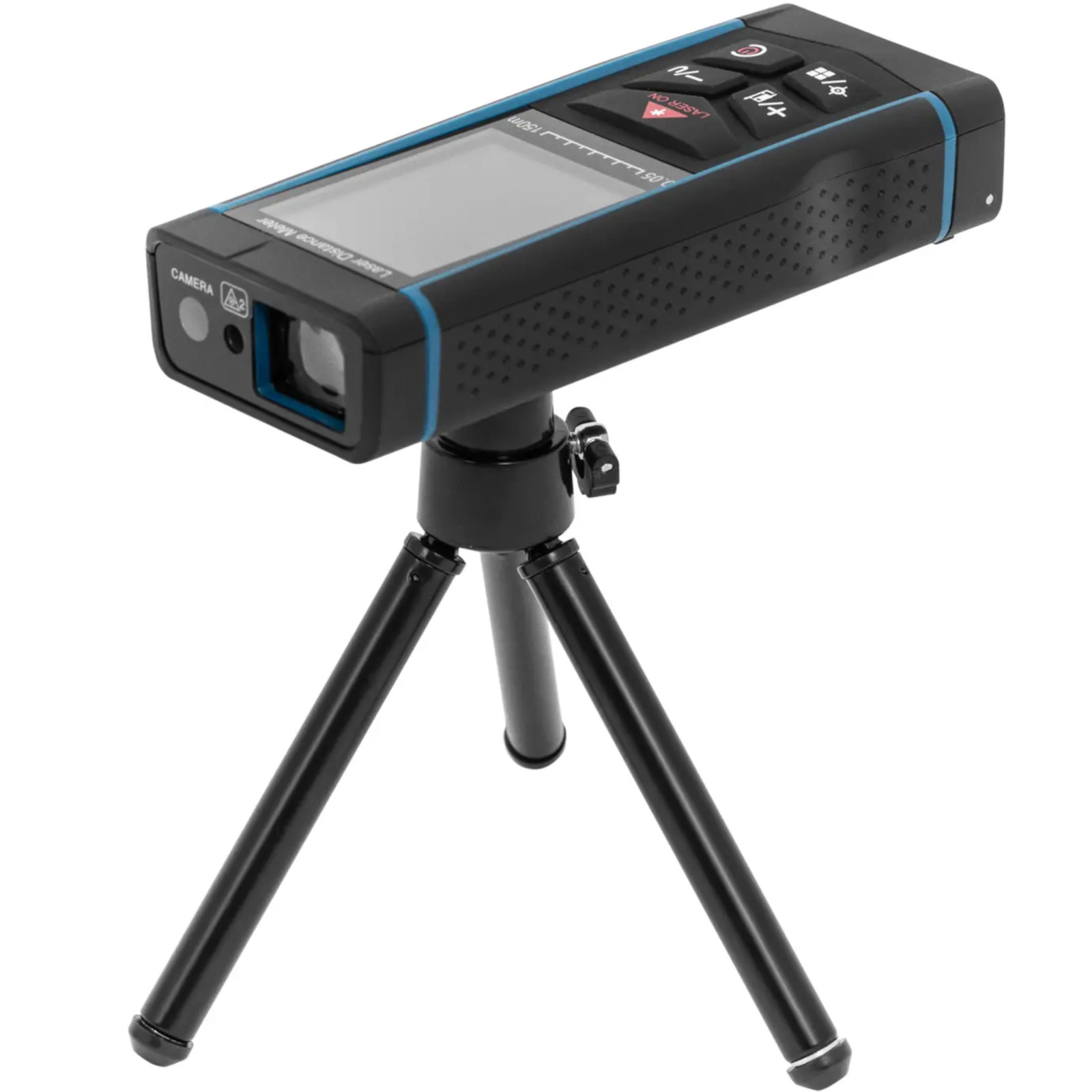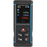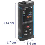 - – Laserowy przyrząd do pomiaru odległości, powierzchni i objętości posiada podświetlany wyświetlacz LCD