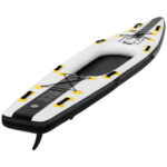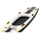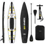 Deski SUP z serii Wave Line są świetną propozycją dla wszystkich miłośników sportów wodnych. Jedną z nich jest model GR-SPB375 w kolorze czarno-białym z żółtymi elementami. Produkt marki Gymrex doskonale nada się do pływania na płytkich wodach z umiarkowanymi falami np. przy brzegach jezior, rzek, mórz czy oceanów. Wytrzymałość na obciążenia wynosi do 120 kg. Konstrukcja 2w1 – deskę SUP szybko i łatwo przerobisz na kajak. Wystarczy, że zdejmiesz wieko zakrywające siedzisko. Deskę wykonano m.in. z laminowanego PVC oraz zastosowano rdzeń stworzony w technologii drop-stitch, który usztywnia deskę SUP po napompowaniu. Napompowany sprzęt przetransportujesz dzięki uchwytowi umieszczonemu na górze. Po spuszczeniu powietrza wszystkie elementy możesz włożyć do dołączonego plecaka.