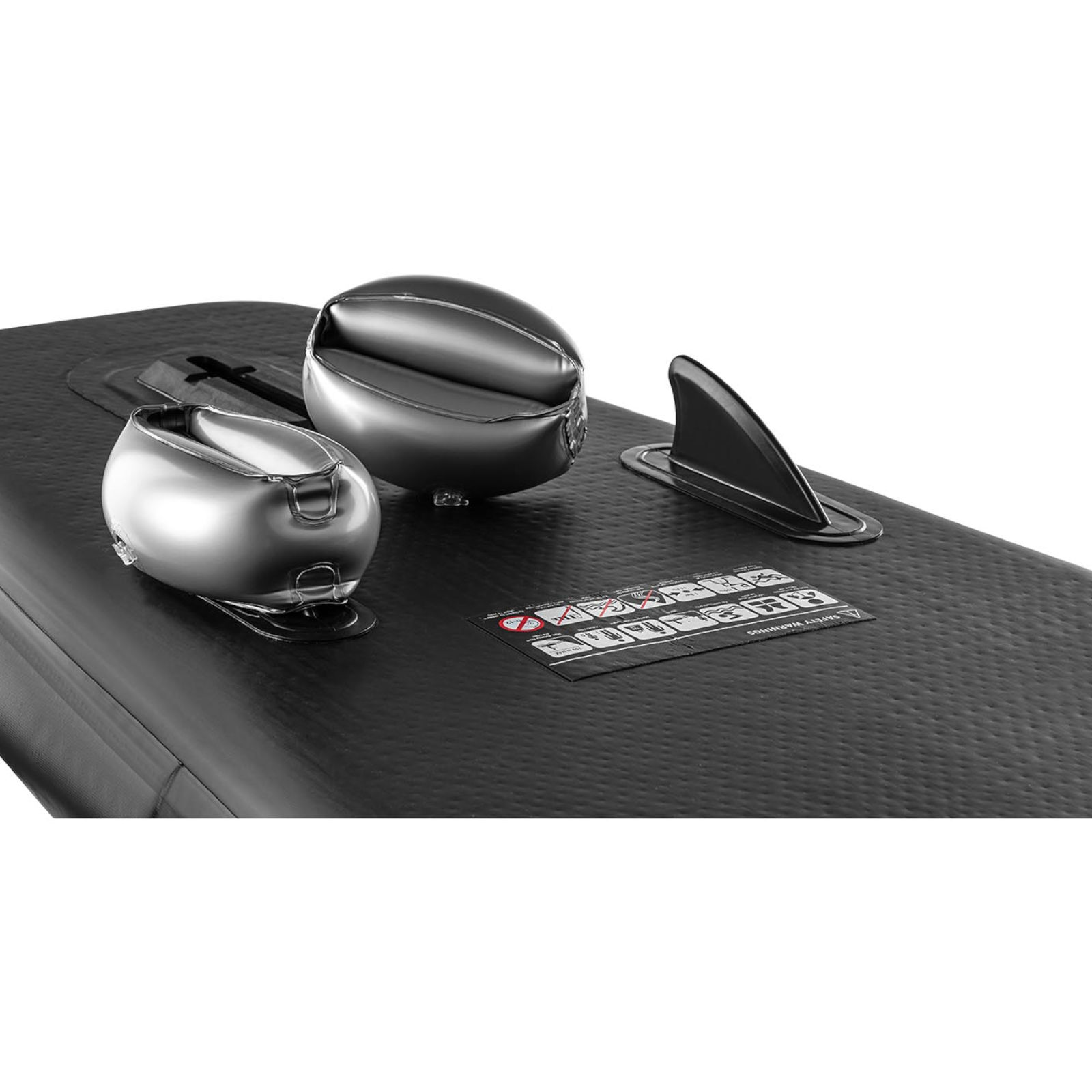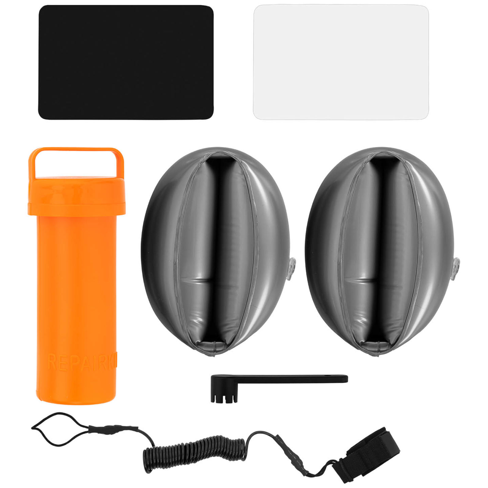 Do zestawu dołączamy lekkie oraz solidne dwustronne wiosło z aluminium, akcesoria do naprawy oraz ręczną pompkę, smycz o długości 305 cm z zapięciem na rzep, którą przymocujesz do nogi, dzięki czemu deska nie odpłynie gdy wpadniesz do wody. Stabilność podczas pływania gwarantuje mata EVA. Jej powierzchnia o dużej przyczepności sprawia, że użytkownik nie ześlizgnie się z deski.