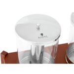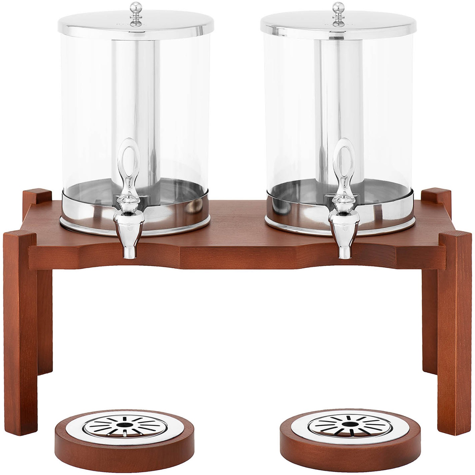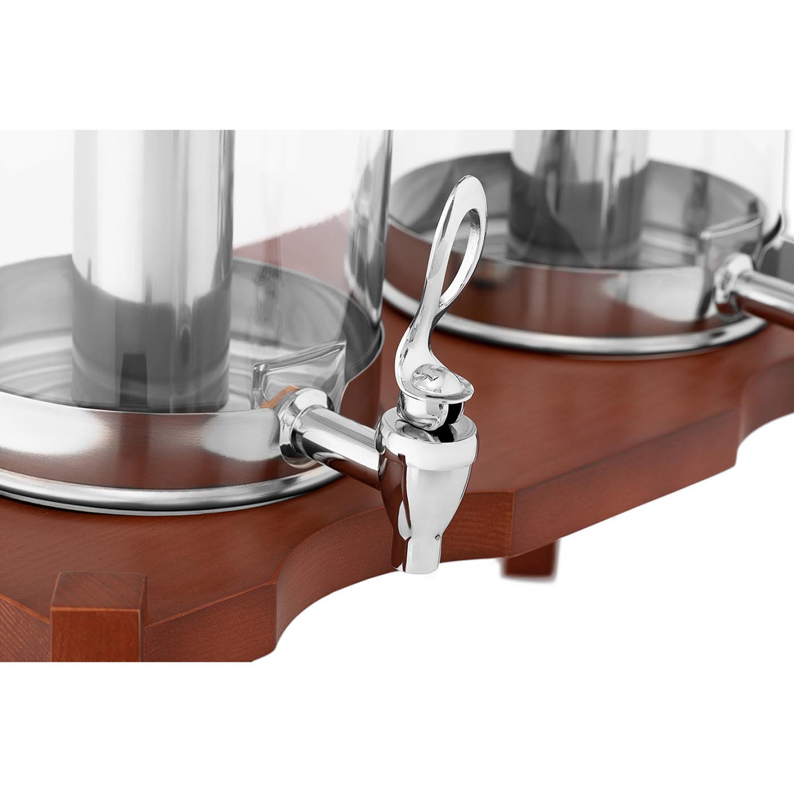 Duża pojemność wynosi 2 x 7l. Zawartość chłodzona jest poprzez lód umieszczony w rurkach ze stali nierdzewnej. Ścianki zbiorników są przezroczyste, co ułatwia kontrolowanie ilości płynów. Kraniki szybko i precyzyjnie odmierzają porcję napoju. Dyspenser wykonany został ze stali nierdzewnej, drewna oraz tworzywa PC. Dobrze wyważona podstawa zapewnia mu stabilność.