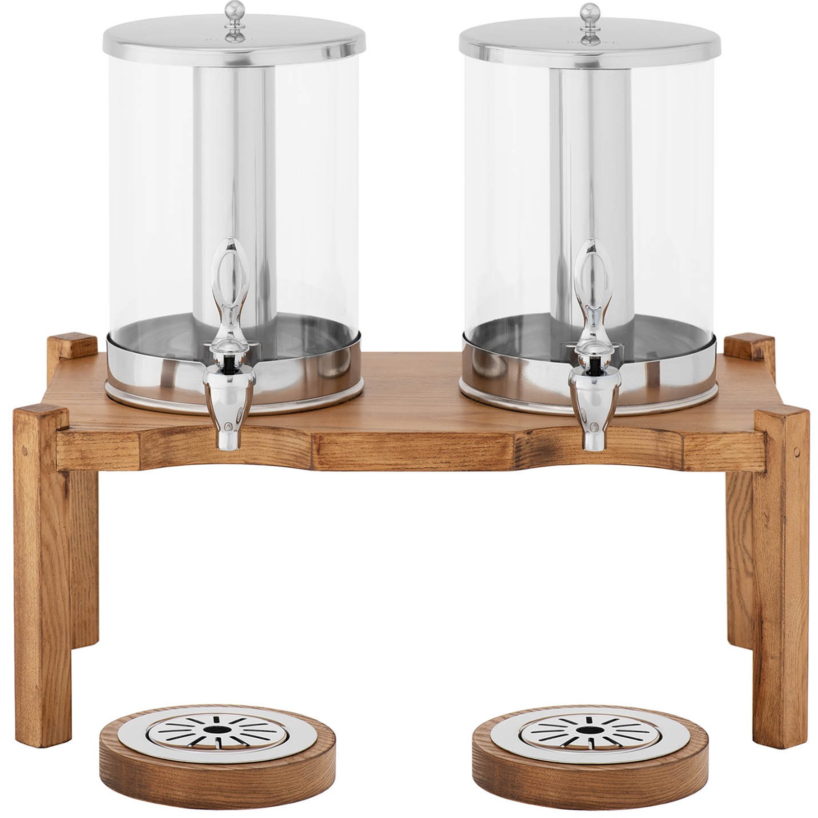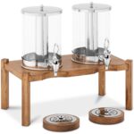 Duża pojemność wynosi 2 x 7l. Zawartość chłodzona jest poprzez lód umieszczony w rurkach ze stali nierdzewnej. Ścianki zbiorników są przezroczyste, co ułatwia kontrolowanie ilości płynów. Kraniki szybko i precyzyjnie odmierzają porcję napoju. Dyspenser wykonany został ze stali nierdzewnej, drewna oraz tworzywa PC. Dobrze wyważona podstawa zapewnia mu stabilność.