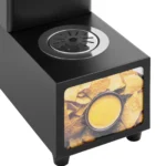Dozownik marki Royal Catering pozwala serwować pyszny, ciepły sos serowy. Sprawdzi się w kinie, restauracji fast food, kawiarni czy na imprezie. Pojemny zbiornik mieści aż 4,8 l w worku lub 3 l w pojemniku o wysokości do 10 cm i niezawodnie utrzymuje sosy w odpowiedniej temperaturze. Urządzenie posiada nowoczesny design, wpada w oko i tworzy trio z podgrzewaczem do nachos i maszyną do popcornu. Dozownik pracuje z mocą 150 W i szybko doprowadza wszelkiego rodzaju dipy do pożądanej temperatury. Obsługiwany jest w bardzo prosty sposób za pomocą panelu sterowania. Urządzenie nagrzewa się do temperatury w zakresie 55-80°C. W strefie grzewczej można przygotować następną porcję sosu. Ochrona przed przegrzaniem zapewnia bezpieczeństwo i zapobiega uszkodzeniom. Pompa perystaltyczna dozownika jest tak wydajna, że wysysa z opakowania nawet ostatnią kroplę sosu, co zmniejsza marnowanie żywności i ułatwia czyszczenie. Dozownik wykonany jest ze stali nierdzewnej i blachy zimnowalcowanej. Dzięki temu mycie urządzenia jest bezproblemowe. 4 nóżki zapewniają bezpieczną podstawę.