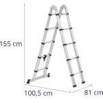 • – Drabina wykonana jest z trwałego i wytrzymałego aluminium i zniesie obciążenie do 150 kg.