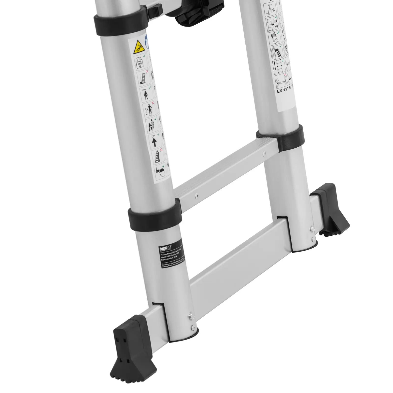 - – Drabina wykonana jest z trwałego i wytrzymałego aluminium i zniesie obciążenie do 150 kg.