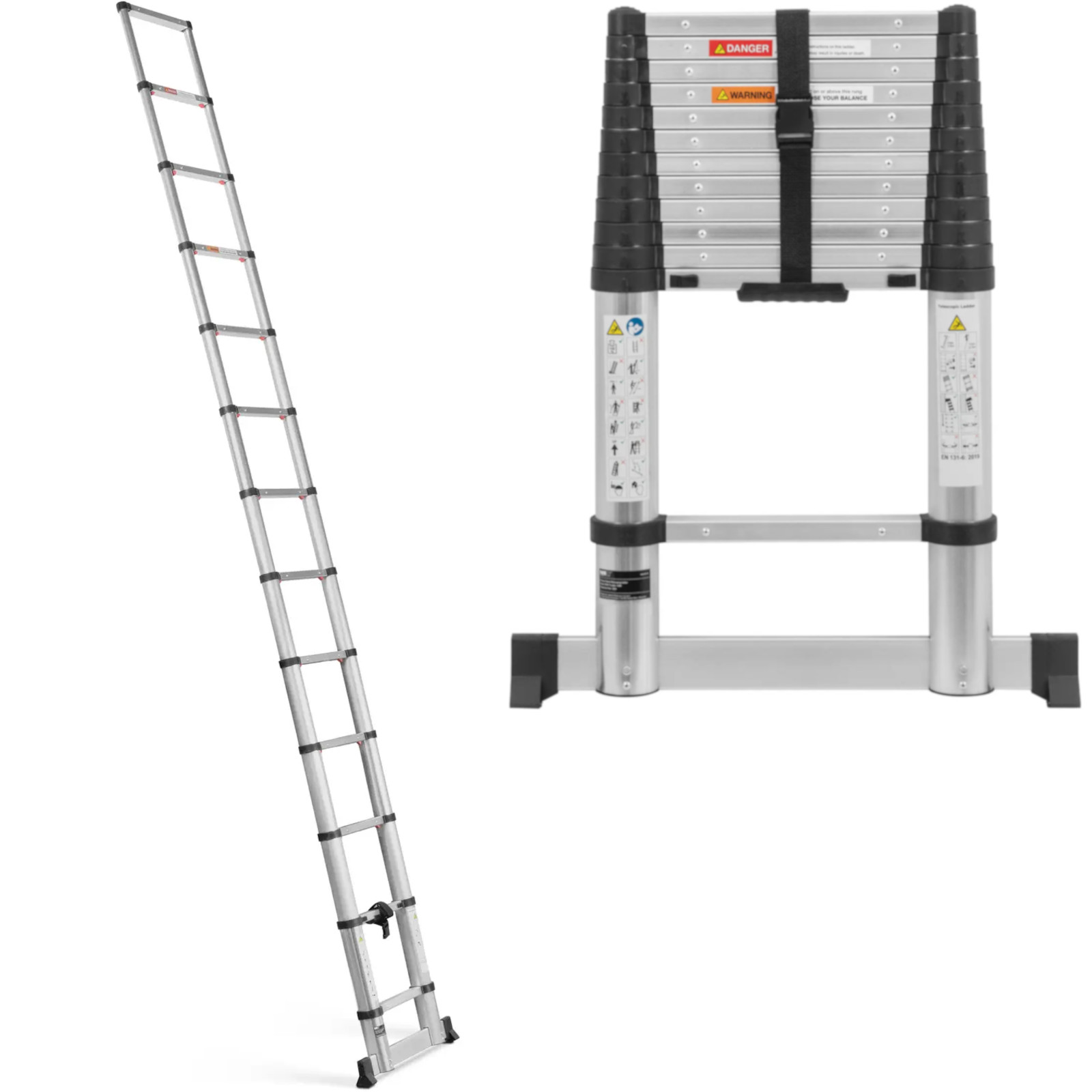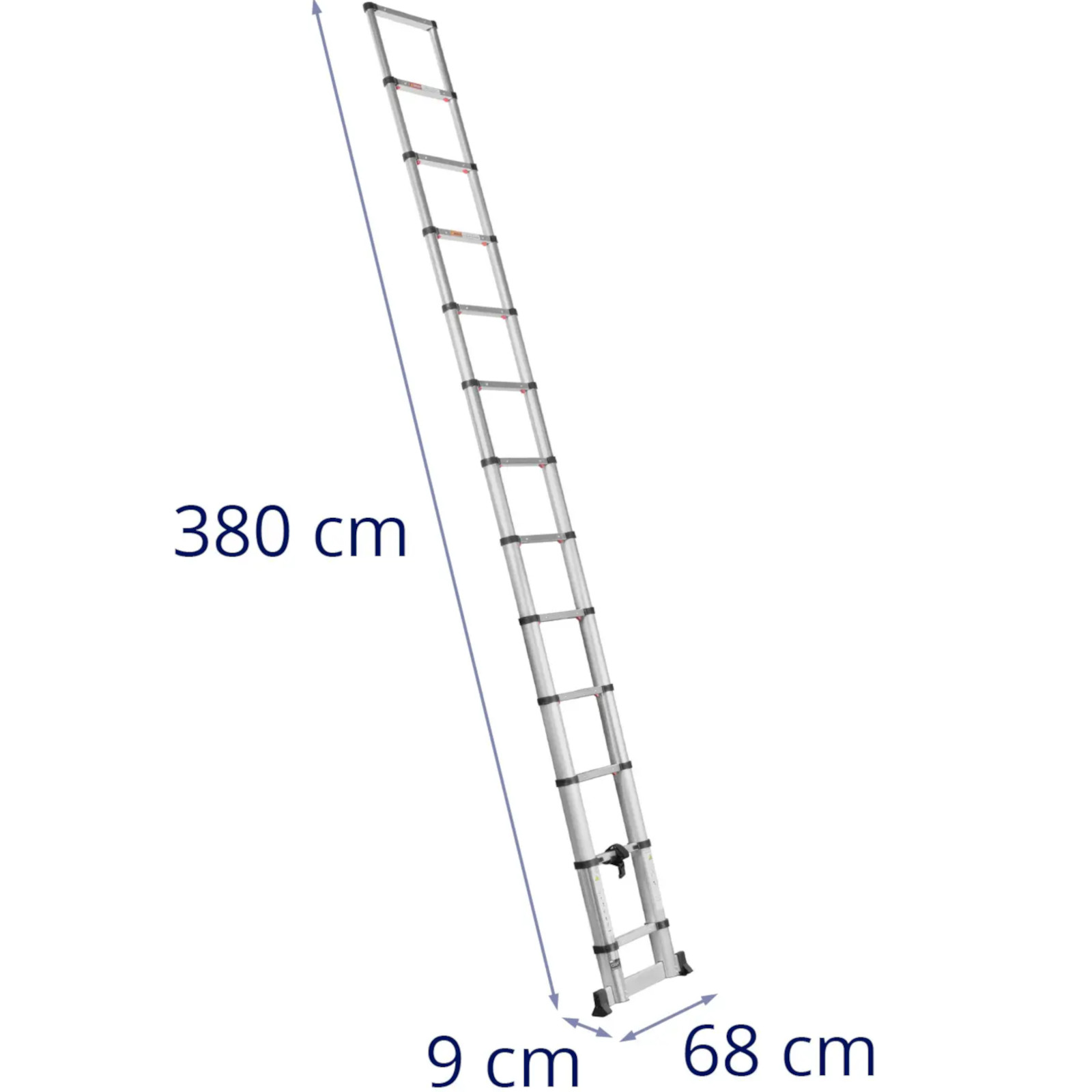 - – Drabinę teleskopową o wysokości 0,87 – 3,80 m można wykorzystać do wielu zadań i przechować, oszczędzając miejsce,