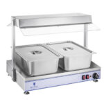 Płyta grzewcza z dodatkowymi promiennikami ciepła w formie 2 halogenów. Urządzenie zaprojektowano do profesjonalnej eksploatacji w branży HoReCa: w restauracjach, bufetach, na stołówkach, przyjęciach z cateringiem itp. Model RCHP-70 usprawnia podgrzewanie (0 – 110°C) i utrzymywanie w cieple rozmaitej żywności umieszczonej w garnkach, pojemnikach GN i innych.