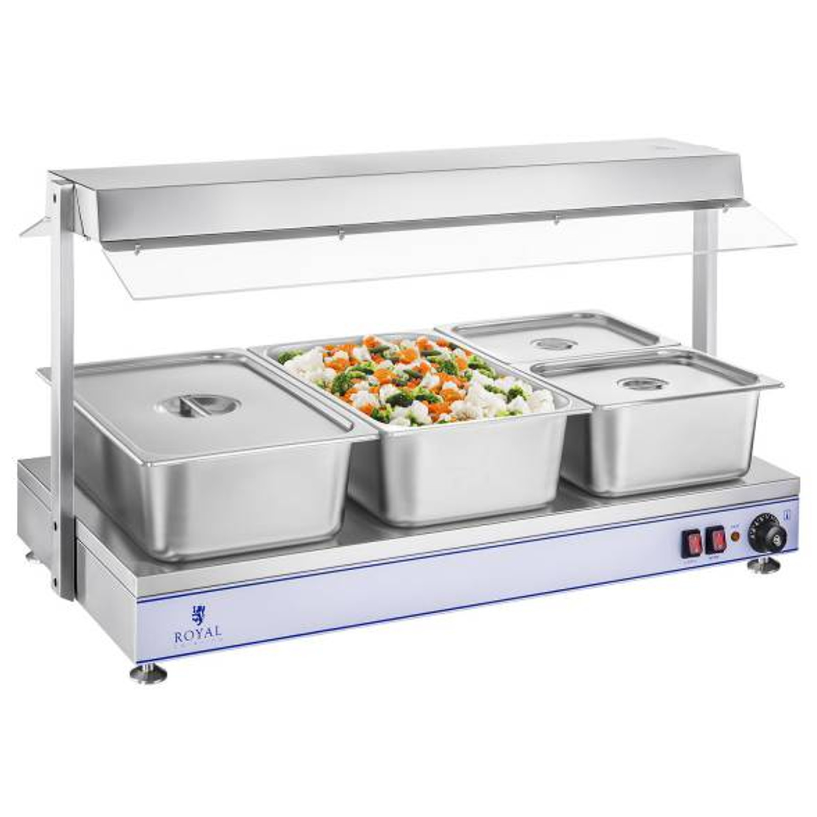 Kompaktowa budowa płyty grzewczej, którą łatwo przetransportować (daszek z halogenami  się składa), podnosi użyteczność urządzenia Royal Catering. Funkcjonalność i wykorzystanie materiałów wysokiej jakości gwarantują pomyślną, długoletnią eksploatację tacy gastronomicznej.