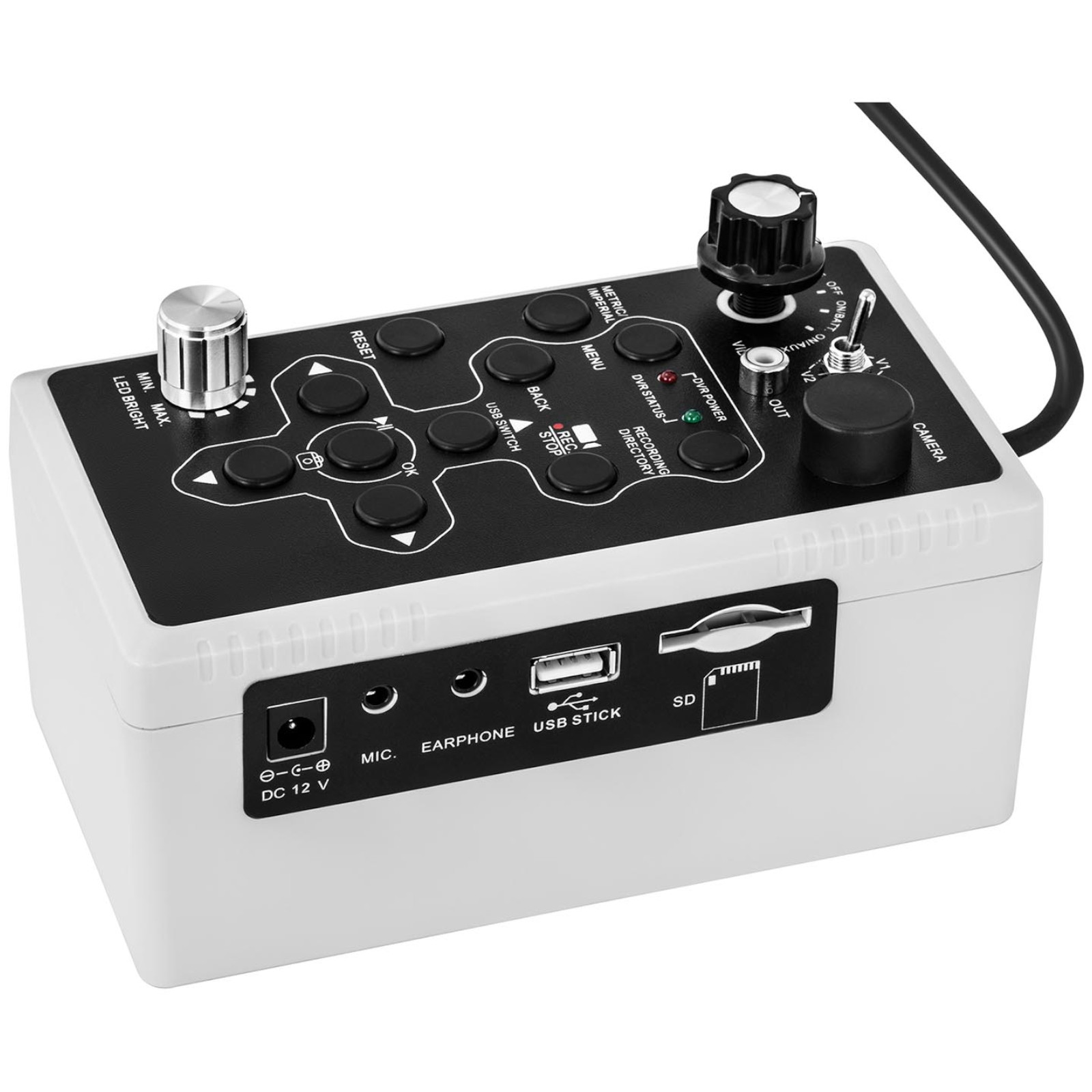 Kamera endoskopowa idealnie sprawdzi się do kontroli mało dostępnych zakamarków np. instalacji rurowych. Dzięki przewodowi o długości 20 m będzie idealna do wykorzystania podczas np. inspekcji kanałów wentylacyjnych czy kanalizacji. Kąt widzenia 105° oraz 12 diod zapewniają doskonałą widoczność. Kolorowy ekran TFT o przekątnej 7” wyświetli zarejestrowany obraz a filmy i zdjęcia zapisywane są na karcie SD (maks. 256 GB).