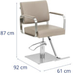 • – Krzesło fryzjerskie o wymiarach 49 x 51 cm, z ergonomicznie ukształtowanym siedziskiem i wyjątkowo mocnym wypełnieniem z pianki,