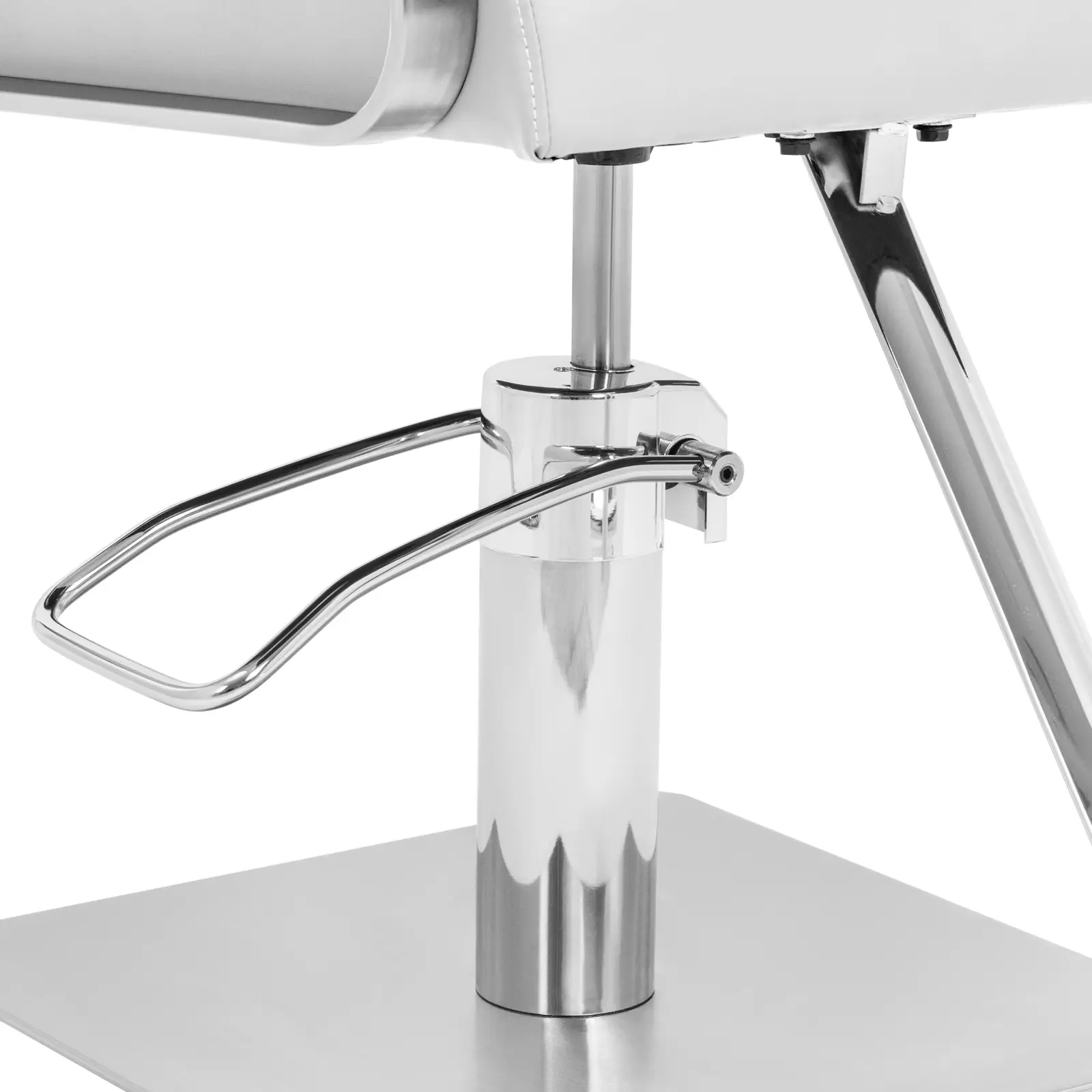 • – Fotel do salonu fryzjerskiego o solidnej konstrukcji ze stali nierdzewnej i dużej podstawie o średnicy 45 cm,