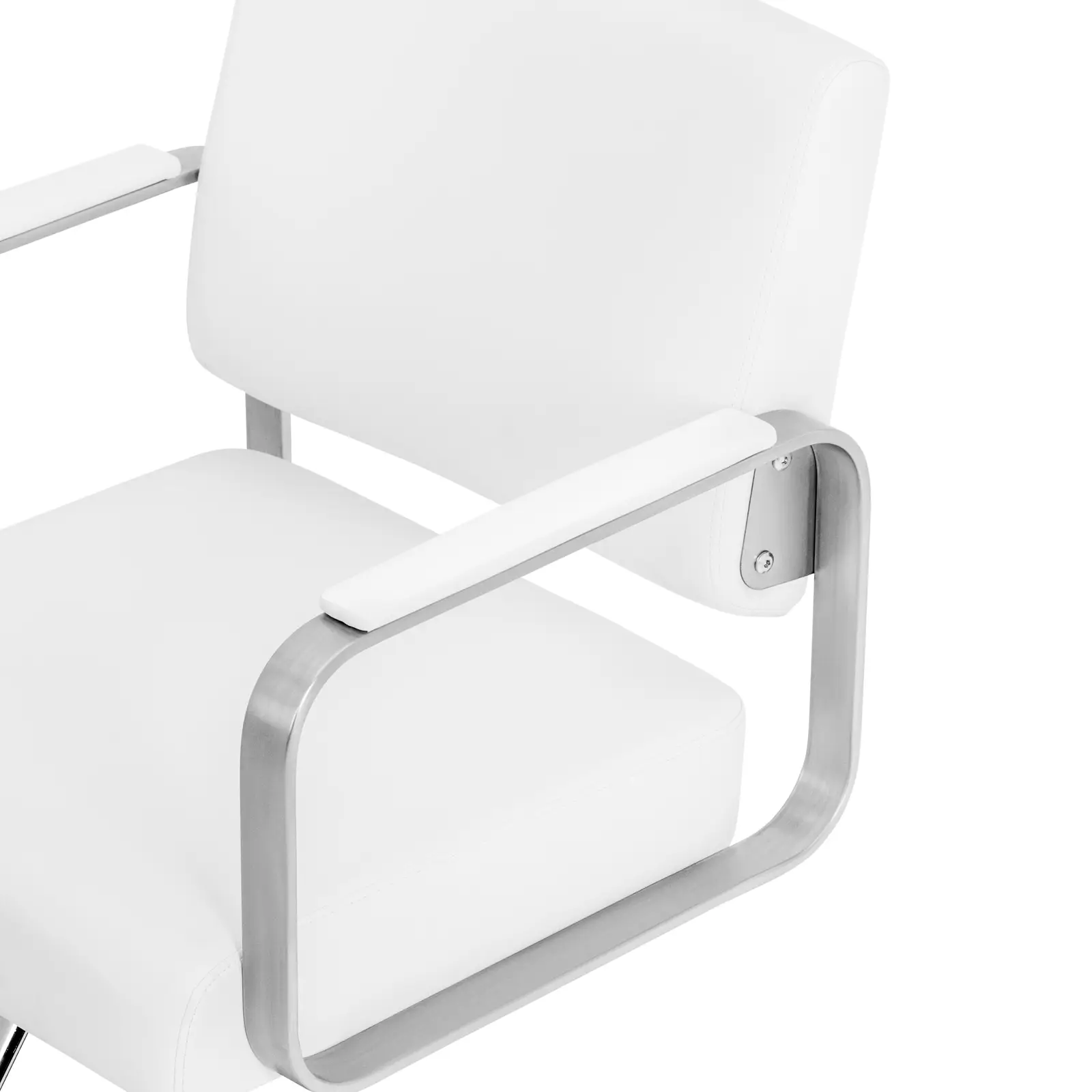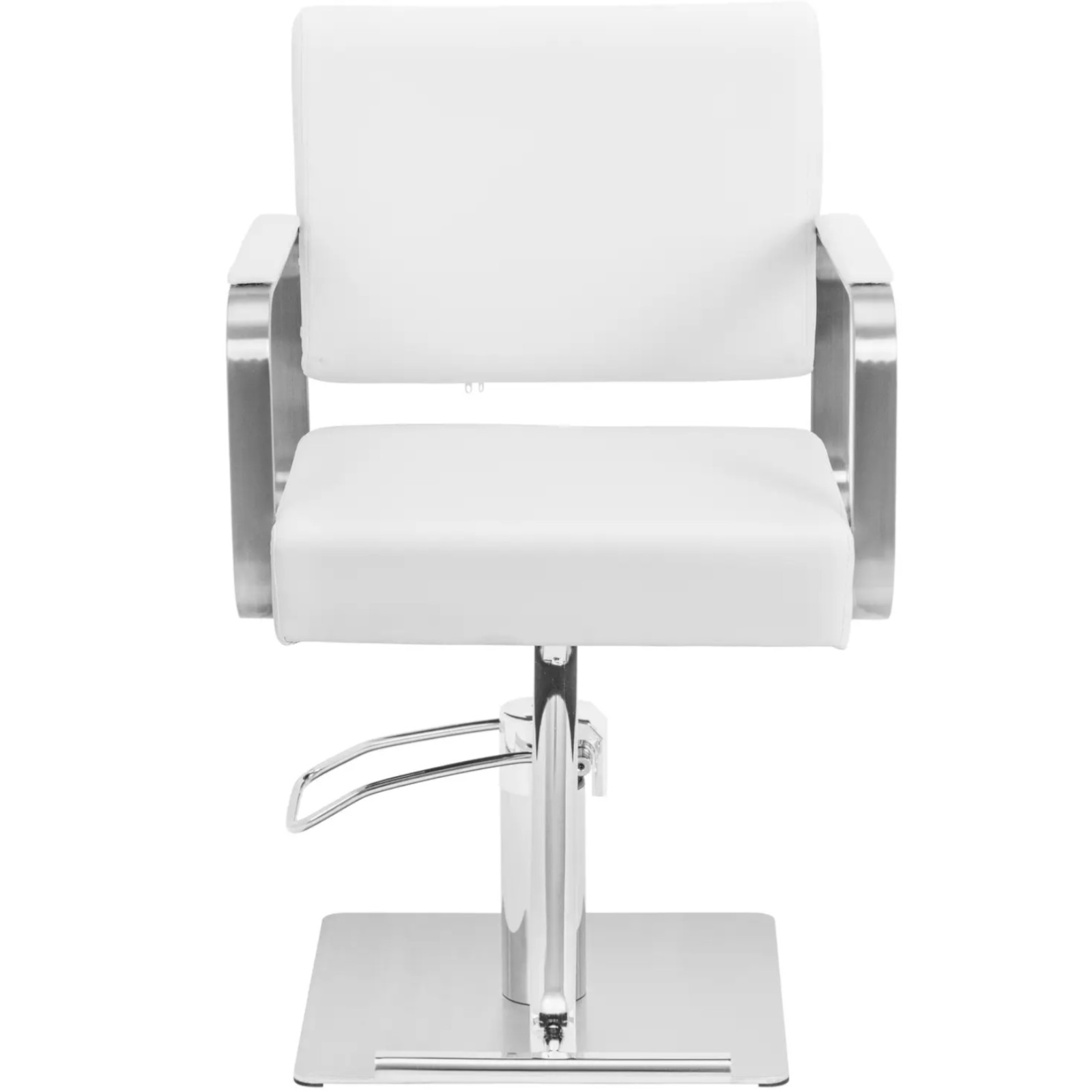 Fotel fryzjerski Otley marki Physa pozwoli stworzyć wygodną przestrzeń dla klientów i doda stylu salonowi. Subtelny design w białej kolorystyce z posrebrzanymi elementami ze stali nierdzewnej wpasuje się w każdy wystrój. Fotel fryzjerski z podnóżkiem i obitym oparciem zachwyci maksymalnym komfortem, czy to w salonie fryzjerskim, tatuażu, czy gabinecie kosmetycznym. Wysokość siedziska można wygodnie ustawić w zakresie od 50 do 66 cm za pomocą pompy hydraulicznej. Dodatkowo można obrócić krzesło do pozycji, która jest najwygodniejsza do pracy. W kilku prostych krokach można osiągnąć optymalną pozycję roboczą, która nie będzie męczyć, nawet podczas pracowitych dni. Klienci będą siedzieć niezwykle wygodnie na ergonomicznym krześle fryzjerskim. Dbają o to wysokie podłokietniki oraz wysokiej jakości pianka, która pełni funkcję wypełnienia. Jest miękka i zachowuje swój kształt. Wytrzymałe obicie ze sztucznej skóry jest łatwe w czyszczeniu, a ponadto nie wchłania kurzu i wody. Rama fotela fryzjerskiego wykonana jest z wytrzymałej i eleganckiej stali nierdzewnej. Solidna konstrukcja bezpiecznie znosi obciążenie 200 kg i zapewnia krzesłu wsparcie, a także wysoką trwałość. Duża podstawa o średnicy 45 cm zapewnia dodatkową stabilność. Gładkie powierzchnie z posrebrzanej stali nierdzewnej podkreślają stylowy wygląd.