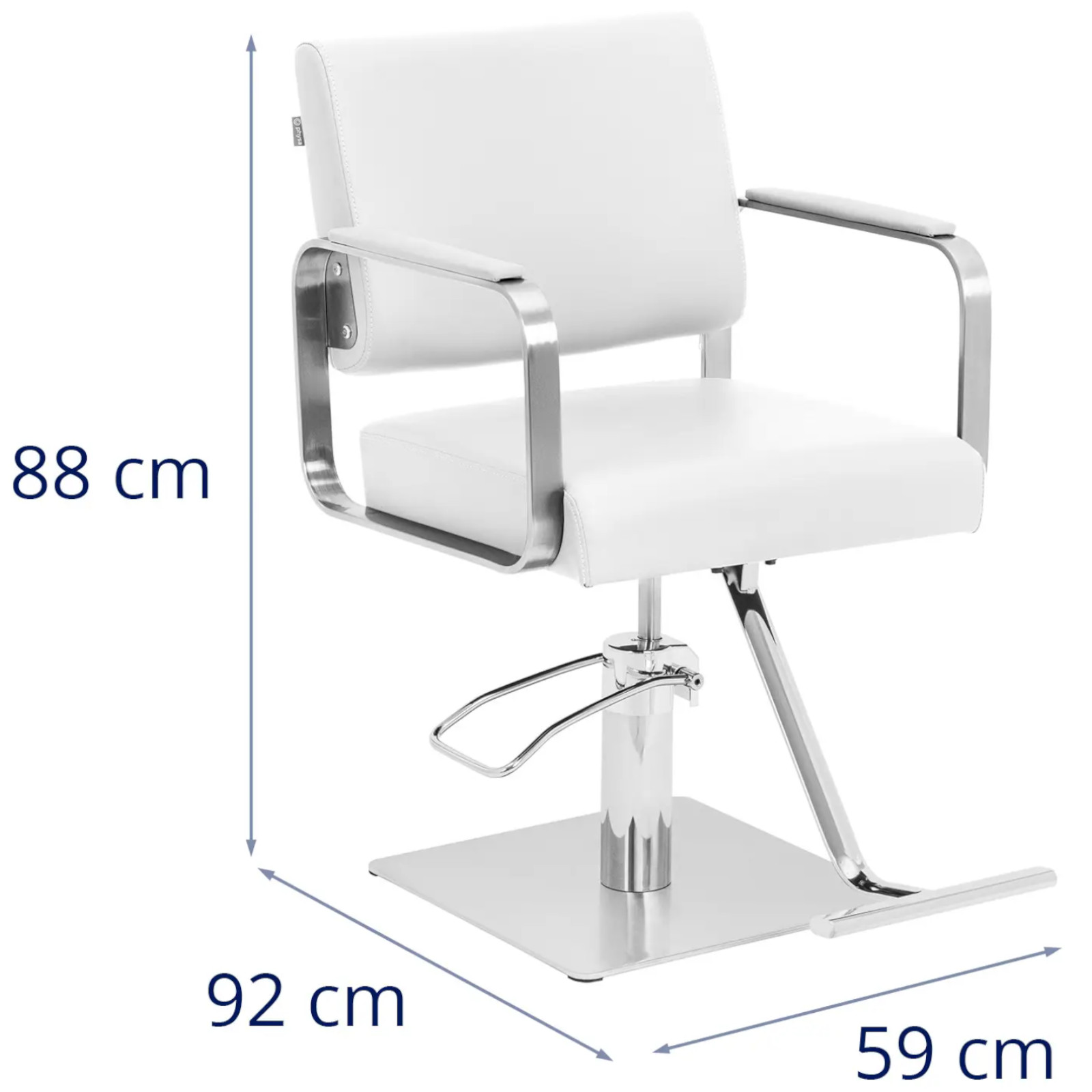 • – Krzesło fryzjerskie o wymiarach 49 x 51 cm, z ergonomicznie ukształtowanym siedziskiem i wyjątkowo mocnym wypełnieniem z pianki,