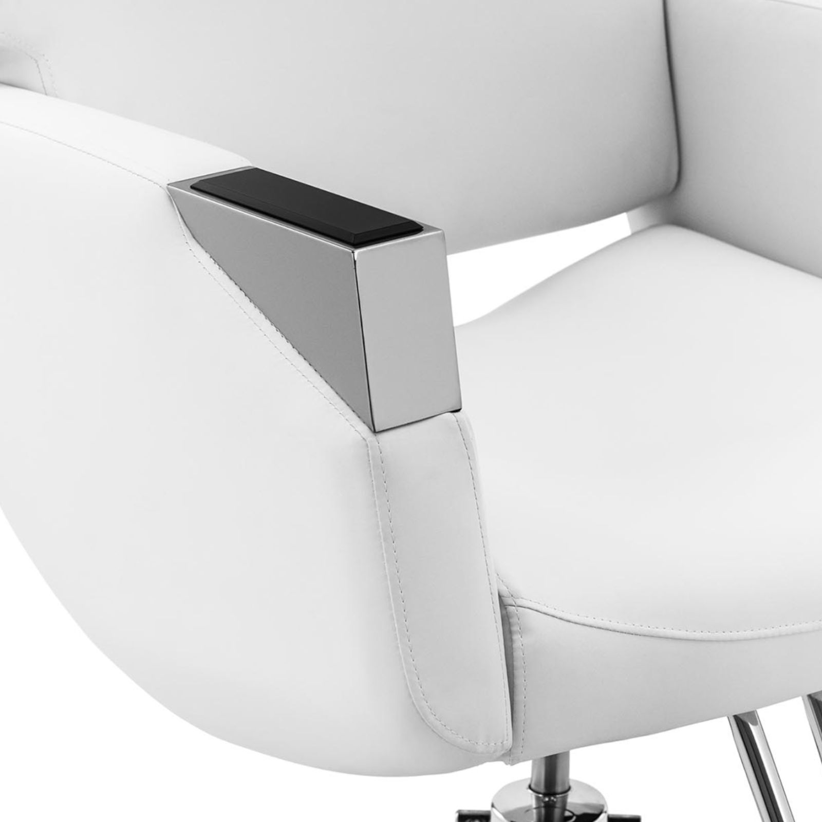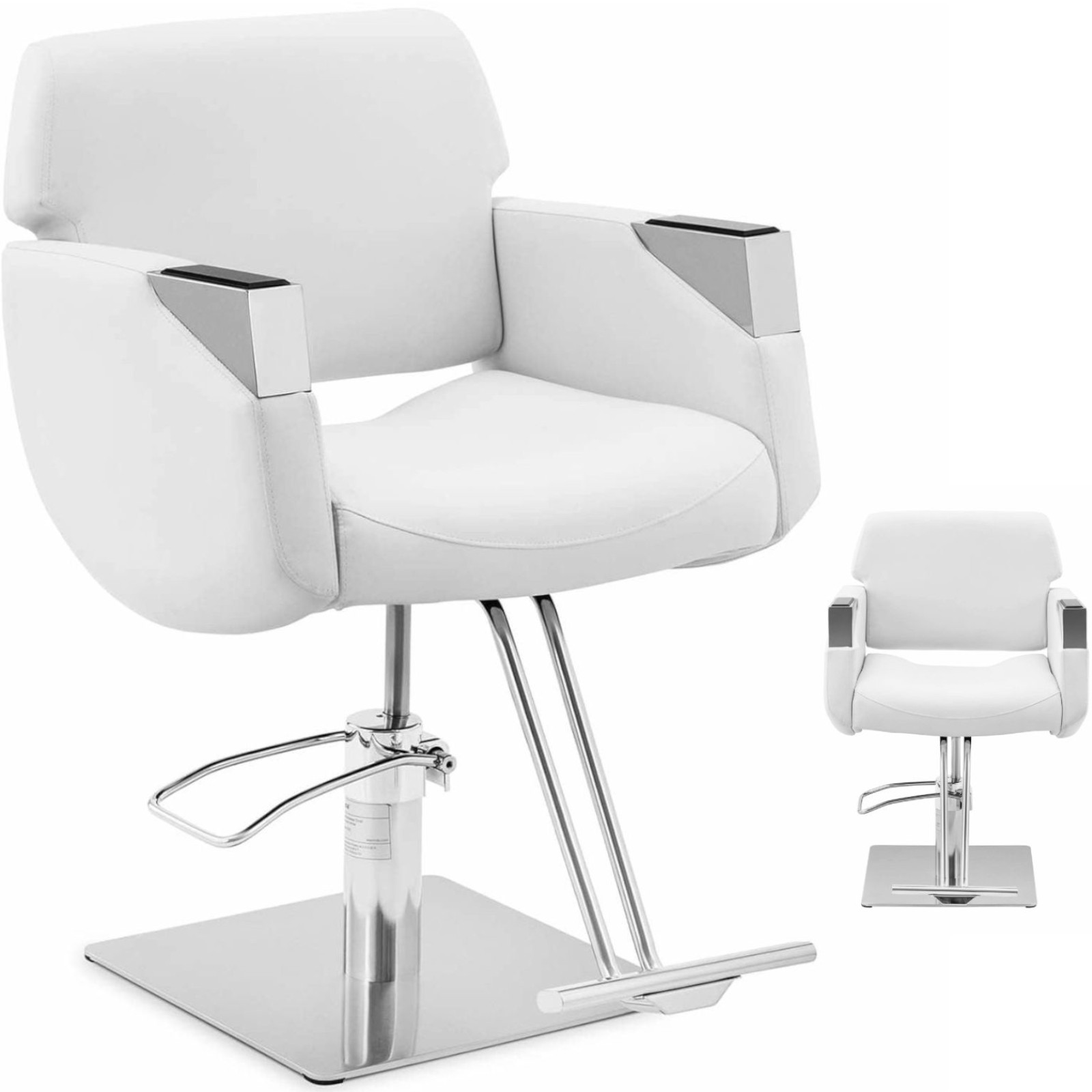 Fotel fryzjerski marki Physa sprawdzi się zarówno w salonie fryzjerskim, tatuażu, jak i kosmetycznym. Jego atrakcyjny wygląd w kolorze białym i srebrnym dodaje stylowego akcentu w salonie. Krzesło posiada elegancki srebrny podnóżek. Fotel wyposażono w wygodne wysokie podłokietniki. Pianka, którą wypełniono mebel jest miękka i zachowuje swój kształt. Jest łatwa w czyszczeniu, odporna na kurz i wodę. Wysokość regulowana jest w zakresie 880- 1030 mm za pomocą pompy hydraulicznej. Krzesło można obrócić o 360°. Stelaż fotela fryzjerskiego wykonany został z wytrzymałej i eleganckiej stali nierdzewnej. Konstrukcja wytrzymuje obciążenie do 200 kg, co przekłada się na wysoki poziom trwałości. Duża podstawa o średnicy 45 cm zapewnia mu dodatkową stabilność. Gładkie powierzchnie podkreślają jego stylowy wygląd.