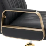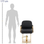 Fotel marki Physa sprawdzi się w każdym salonie fryzjerskim, tatuażu czy gabinecie kosmetycznym. Subtelny design w czarnej i złotej kolorystyce wpasuje się w każdy wystrój. Fotel z podnóżkiem i obitym oparciem zachwyca komfortem. Fotel wyposażono w wysokie podłokietniki oraz wysokiej jakości piankę, która pełni funkcję wypełnienia. Jest miękka i zachowuje swój kształt. Wytrzymałe obicie ze sztucznej skóry jest łatwe w czyszczeniu, pyło- i wodoodporne. Wysokość fotela jest regulowana w zakresie 920 – 1070 mm za pomocą pompy hydraulicznej. Rama fotela fryzjerskiego wykonana jest z wytrzymałej i eleganckiej stali nierdzewnej. Solidna konstrukcja bezpiecznie znosi obciążenie 200 kg. Duża podstawa o średnicy 45 cm zapewnia dodatkową stabilność. Gładkie powierzchnie z pozłacanej stali nierdzewnej podkreślają stylowy wygląd.