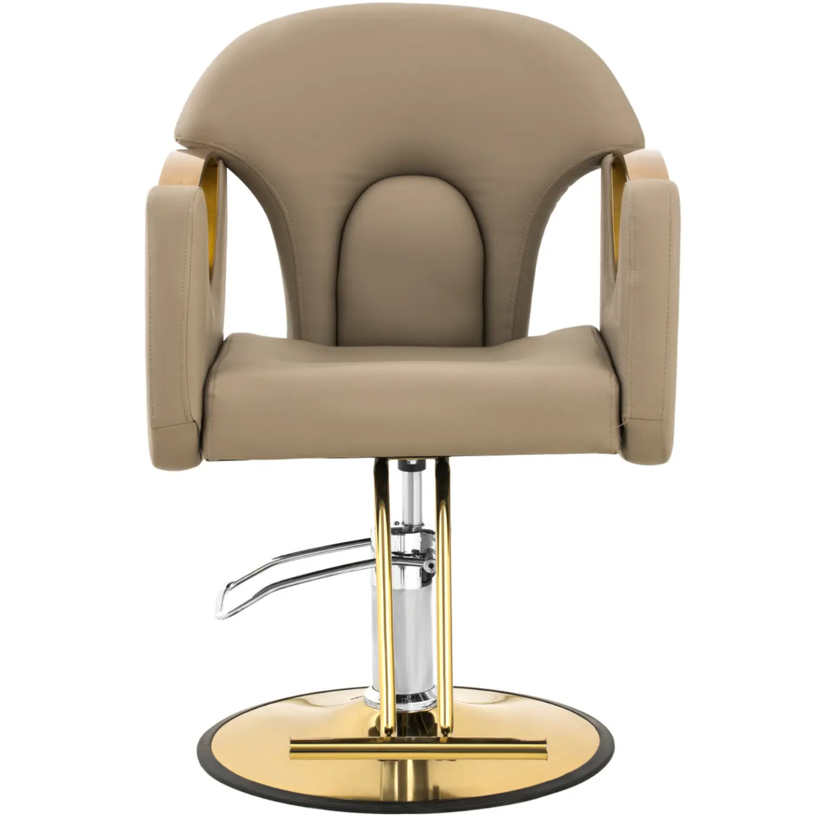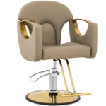 Fotel fryzjerski BARTON BEIGE pozwoli stworzyć wygodną przestrzeń dla klientów i dodać stylu salonowi. Subtelny design w beżowej kolorystyce wpasuje się w każdy wystrój. Fotel fryzjerski z podnóżkiem i obitym oparciem zachwyci gości maksymalnym komfortem. Czy to w salonie fryzjerskim, tatuażu, czy gabinecie kosmetycznym. Rama fotela fryzjerskiego wykonana jest z wytrzymałej i eleganckiej stali nierdzewnej. Solidna konstrukcja bezpiecznie znosi obciążenie 180 kg i zapewnia krzesłu wsparcie, a także wysoką trwałość. Duża podstawa o średnicy 55 cm zapewnia dodatkową stabilność. Gładkie powierzchnie ze stali nierdzewnej podkreślają stylowy wygląd. Krzesło zapewnia ergonomiczną pozycję. Dbają o to wysokie podłokietniki oraz wysokiej jakości pianka. Wytrzymałe obicie ze sztucznej skóry można z łatwością wyczyścić. Fotel przekonuje właściwościami pyło- i wodoodpornymi. Wysokość fotela można łatwo ustawić w zakresie 55 – 65 cm za pomocą pompy hydraulicznej. Krzesło można obrócić o 360°. Pozwoli to osiągnąć optymalną pozycję roboczą, która nie będzie męczyć, nawet podczas pracowitych dni. Podnóżek zapewnia dodatkowy komfort siedzenia.