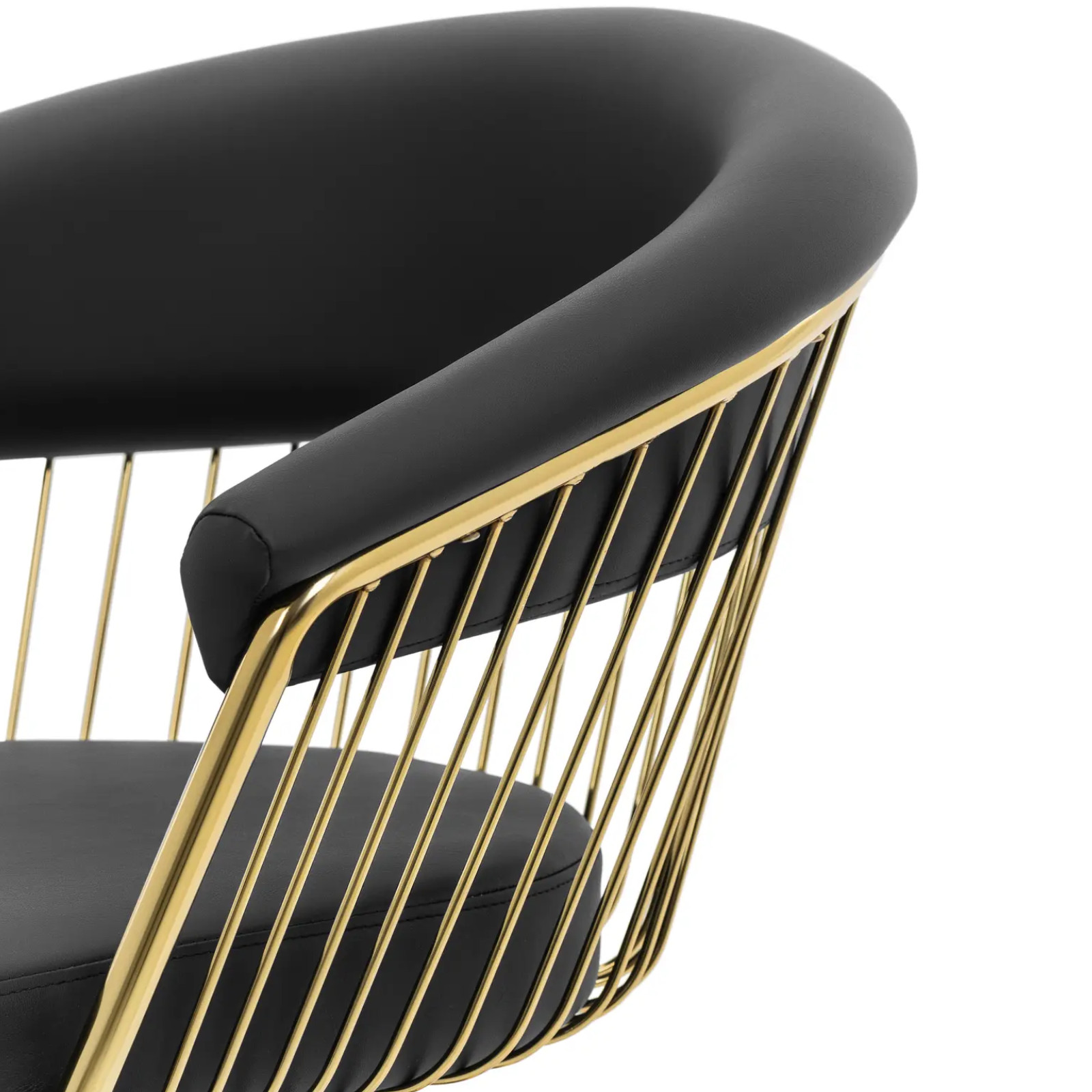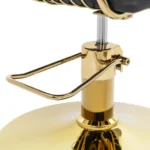 Fotelem fryzjerski marki Physa to stylowy akcent do eleganckiego wnętrza. Sprawdzi się w salonie fryzjerskim, studiu tatuażu oraz gabinecie kosmetycznym. Fotel zapewnia wygodę podczas przeprowadzanych zabiegów, dbają o to to wysokie podłokietniki oraz wysokiej jakości pianka, która pełni rolę wyściółki. Jest miękka i zachowuje swój kształt. Trwała tapicerka ze sztucznej skóry jest łatwa w czyszczeniu, a także nie pochłania wody ani kurzu. Wysokość fotela jest regulowana w zakresie 45 – 54 cm za pomocą pompy hydraulicznej. Krzesło można także obrócić do wygodnej pozycji pracy. Stelaż wykonano z wytrzymałej i eleganckiej stali nierdzewnej. Stabilna konstrukcja bezpiecznie utrzymuje obciążenie 200 kg i zapewnia oparcie krzesła oraz wysoką trwałość. Duża podstawa o średnicy 45 cm dodatkowo zwiększa stabilność. Pozłacane powierzchnie ze stali nierdzewnej podkreślają stylowy design.