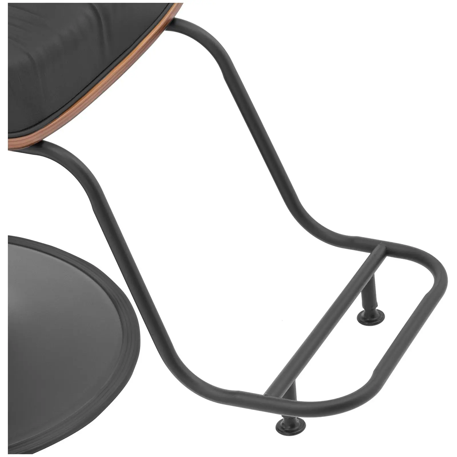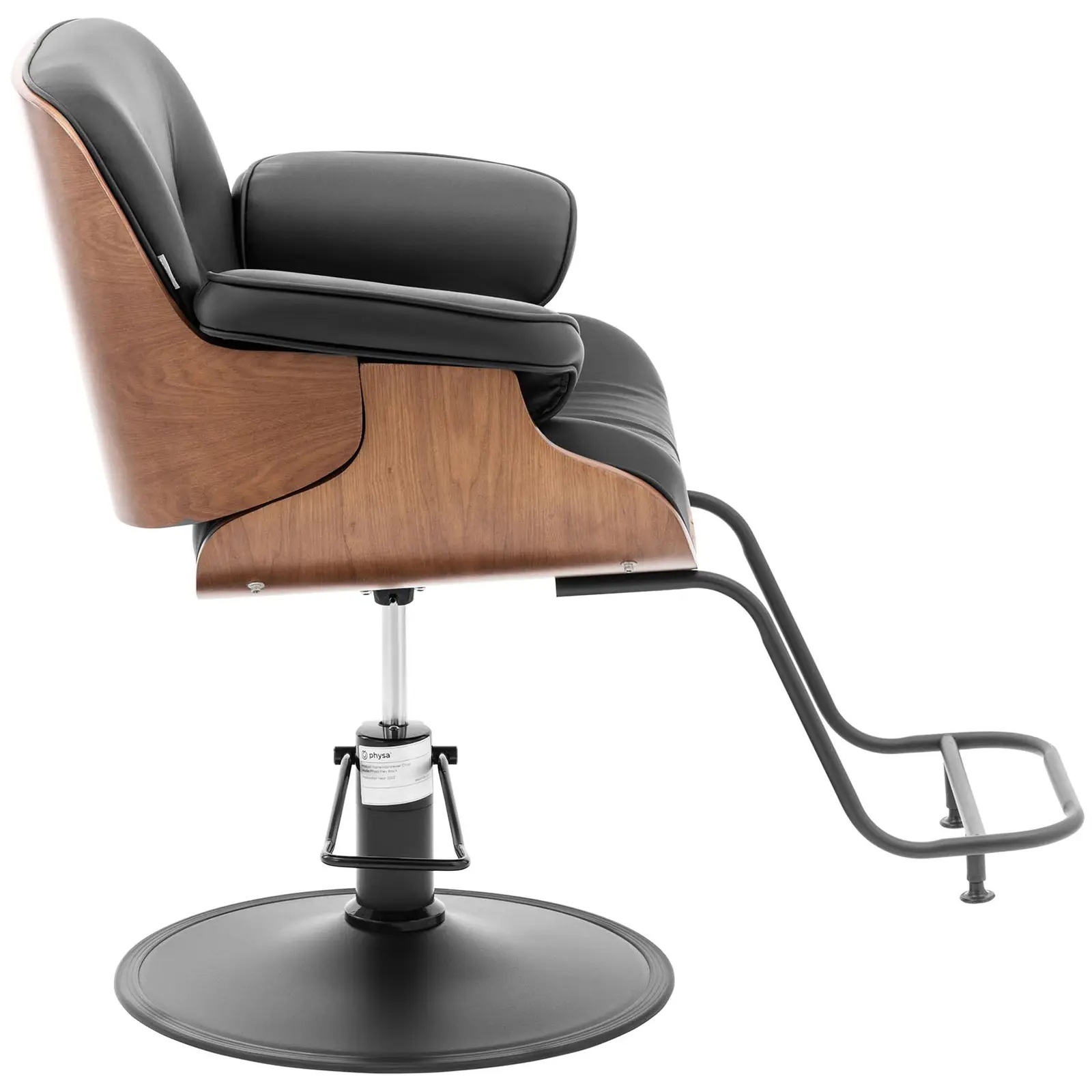 Fotel fryzjerski Filey Black marki physa stworzy wygodną przestrzeń dla klientów oraz doda stylu salonowi. Subtelny design w kolorze czarnym pasuje do każdego otoczenia. Fotel fryzjerski z podnóżkiem i wyściełanym oparciem zapewni maksymalny komfort. Idealnie sprawdzi się w salonie fryzjerskim, studiu tatuażu oraz gabinecie kosmetycznym. Klienci będą siedzieć niezwykle wygodnie na ergonomicznym krześle fryzjerskim z podnóżkiem. Zadbają o to wysokie podłokietniki oraz wysokiej jakości pianka, która pełni funkcję wyściółki. Jest miękka i zachowuje swój kształt. Trwała tapicerka ze sztucznej skóry jest łatwa w czyszczeniu, a także nie pochłania wody. Z kolei kurz nie przywiera do tapicerki. Wysokość fotela fryzjerskiego ustawia się w zakresie 83 – 96 cm za pomocą pompy hydraulicznej. Dodatkowo fotel można obrócić o 360° do pozycji, z której najlepiej się pracuje. W kilku prostych krokach można osiągnąć optymalną pozycję roboczą, która nie będzie męczyć, nawet przez długie godziny. Stelaż fotela fryzjerskiego wykonano z wytrzymałej i eleganckiej stali nierdzewnej. Stabilna konstrukcja bezpiecznie utrzymuje obciążenie 200 kg i zapewnia krzesłu wsparcie, a także wysoką trwałość. Duża podstawa o średnicy 58 cm zapewnia dodatkową stabilność. Czarne powierzchnie ze stali nierdzewnej podkreślają stylowy wygląd.