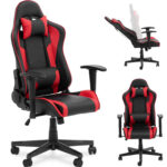 Fotel gamingowy dla gracza regulowany z podłokietnikami do 130 kg czarno – czerwony