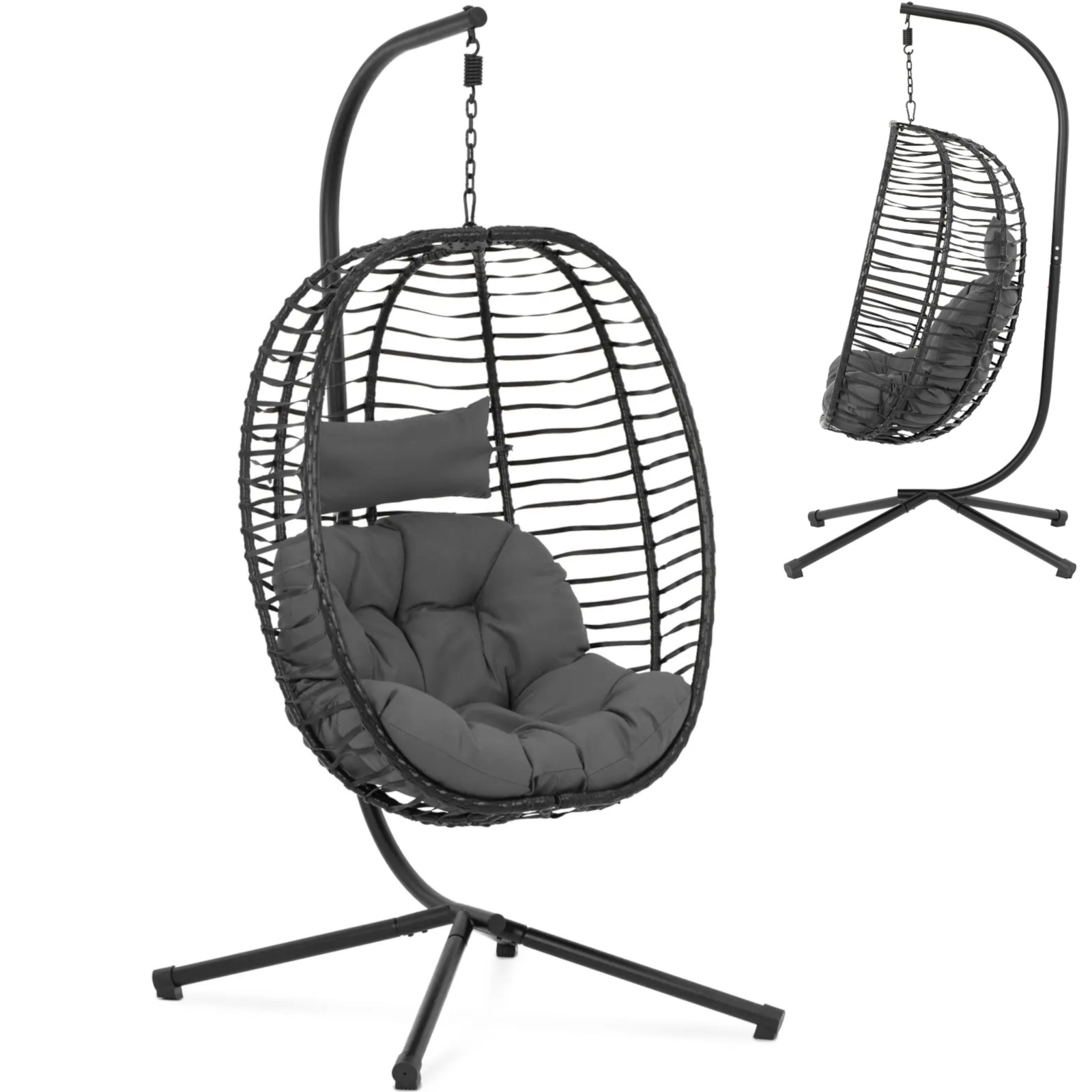 • – Przytulny fotel wiszący z ramą i wygodną poduszką o grubości 8 cm,