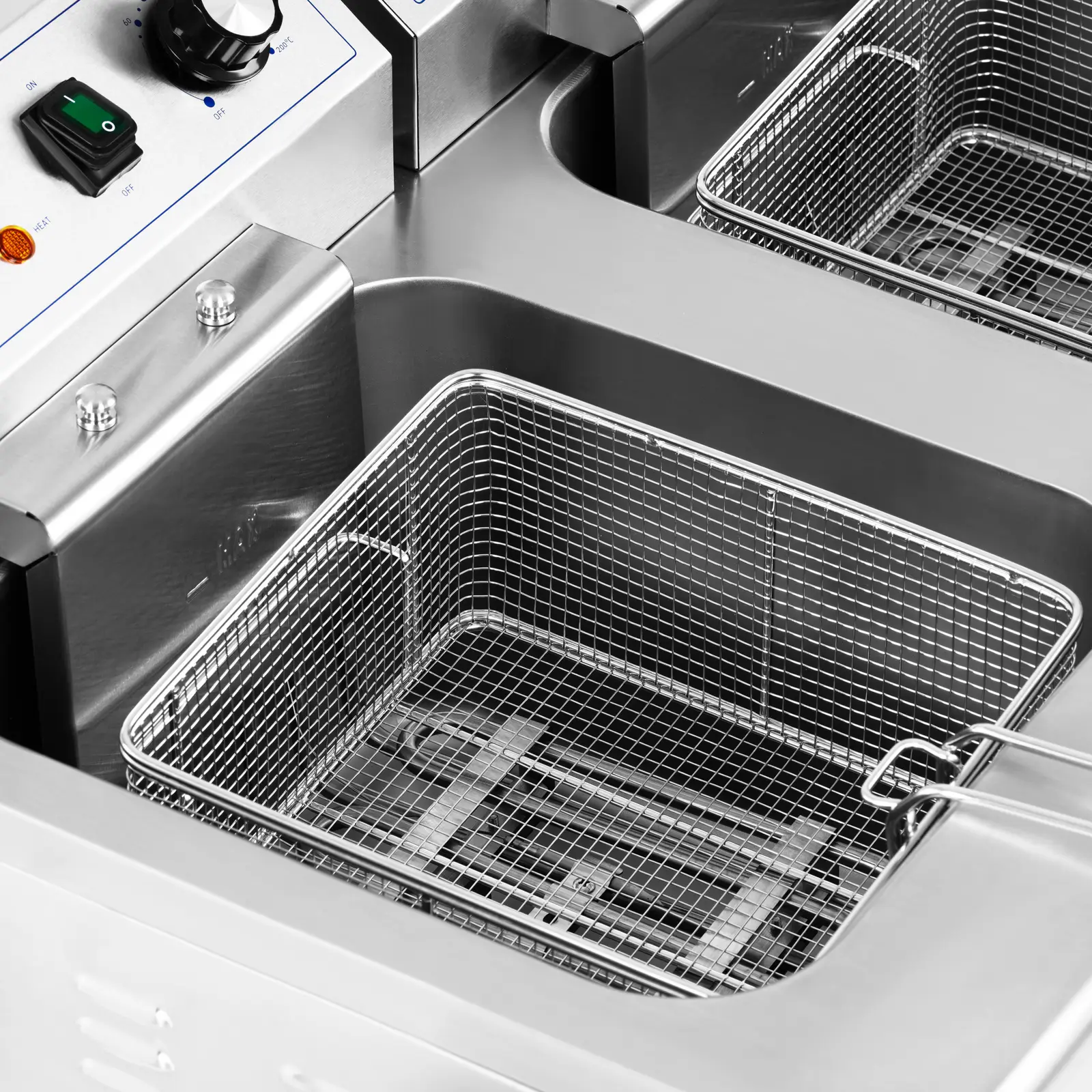 • – Dwukomorowa frytownica o łącznej pojemności 26 l i mocy 10000 W idealna do dużych ilości smażonego jedzenia,