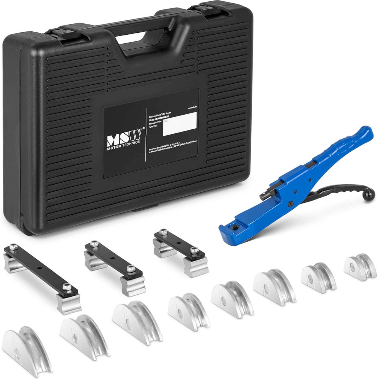 Giętarka firmy MSW sprawdzi się doskonale podczas kształtowania rur XPAP, PEX i miedzianych o grubości ścianki do 1 mm. Praktyczny sprzęt nada się dla hydraulików, monterów instalacji grzewczych, budowlańców oraz wszystkich majsterkowiczów. Wysoka efektywność gięcia nawet do 90°. Dzięki temu można wykonać idealnie równe kolanko. Cały proces przebiega gładko i nie uszkadza rurki. Akcesoria, które dołączono do zestawu, pozwolą przystosować giętarkę do obrabianego materiału. W zestawie znajduje się 8 wymiennych głowic o rozmiarach 10 mm, 12 mm, 14 mm, 15 mm, 16 mm, 18 mm, 20 mm i 22 mm. Wszystkie elementy zmieszczą się w poręcznej walizce z tworzywa sztucznego. Solidne wykonanie ze stopu aluminium i szerokie zastosowanie sprawią, że giętarka będzie stanowić idealne narzędzie w wielu warsztatach. Obsługa urządzenia jest bardzo prosta i poradzi sobie z nią zarówno profesjonalista, jak i amator.
