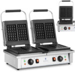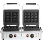 Gofrownica marki Royal Catering sprawdzi się w każdej kawiarni, restauracji czy w budce z goframi. Umożliwia szybkie przygotowanie chrupiących złotobrązowych gofrów w belgijskim stylu. Urządzenie posiada dużą moc 2 x 2000 W, która pozwala przygotować 4 gofry o grubości 2,5 cm i wielkości 170 x 170 mm jednocześnie. Temperatura ustawiana jest osobno dla każdego stanowiska w zakresie 50-300°C. Płyty ze strukturą umożliwiają łatwe wyjmowanie upieczonych gofrów. Zintegrowane zabezpieczenie przed przepełnieniem zapobiega zabrudzeniu urządzenia nadmiarem ciasta i ułatwia jego czyszczenie. Uchwyty są izolowane dla bezpiecznego użytkowania.