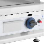 Grill gazowy marki Royal Catering sprawdzi się jako wyposażenie każdej profesjonalnej kuchni. Idealny do smażenia dużej ilości kotletów, burgerów, jajek, kiełbas, bekonu itp. Urządzenie posiada gładką powierzchnię grillową o wymiarach 35 x 40 cm. Wokół płyty zastosowano rant chroniący otoczenie przed zachlapaniem. Tacka ociekowa zbiera ściekający tłuszcz ułatwiając czyszczenie urządzenia. Grill zasilany jest gazem (propan/butan), idealnie sprawdzi się podczas imprez plenerowych. Urządzenie wykonane zostało ze stali nierdzewnej, odznacza się trwałością i wydajnością. Nie reaguje w kontakcie z żywnością, jest łatwy w czyszczeniu i posiada atrakcyjny wygląd.
