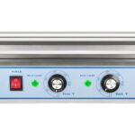 Dzięki płynnej regulacji temperatury można dokładnie sterować procesem przygotowania potraw. Dwie oddzielnie sterowane strefy grzania pozwalają jednocześnie szybko opiekać oraz utrzymywać w cieple już gotowe kiełbaski. Urządzenie wyposażone jest w lampki kontrolne wskazujące moc oraz gotowość urządzenia do pracy.
