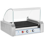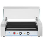 Grill rolkowy przeznaczony jest do szybkiego przygotowania kiełbasek i parówek HOT DOG. Urządzenie dobrze sprawdzi się w profesjonalnych kuchniach, barach, na stacjach paliwowych oraz w mobilnych punktach gastronomicznych. Moc urządzenia wynosi 2200 W. Temperaturę reguluje się płynnie do 250°C. Rolki grzewcze (11 szt.) wykonane zostały ze stali pokrytej TEFLONEM wysokiej jakości, który zapobiega przywieraniu podgrzewanych produktów i ułatwia późniejsze czyszczenie.